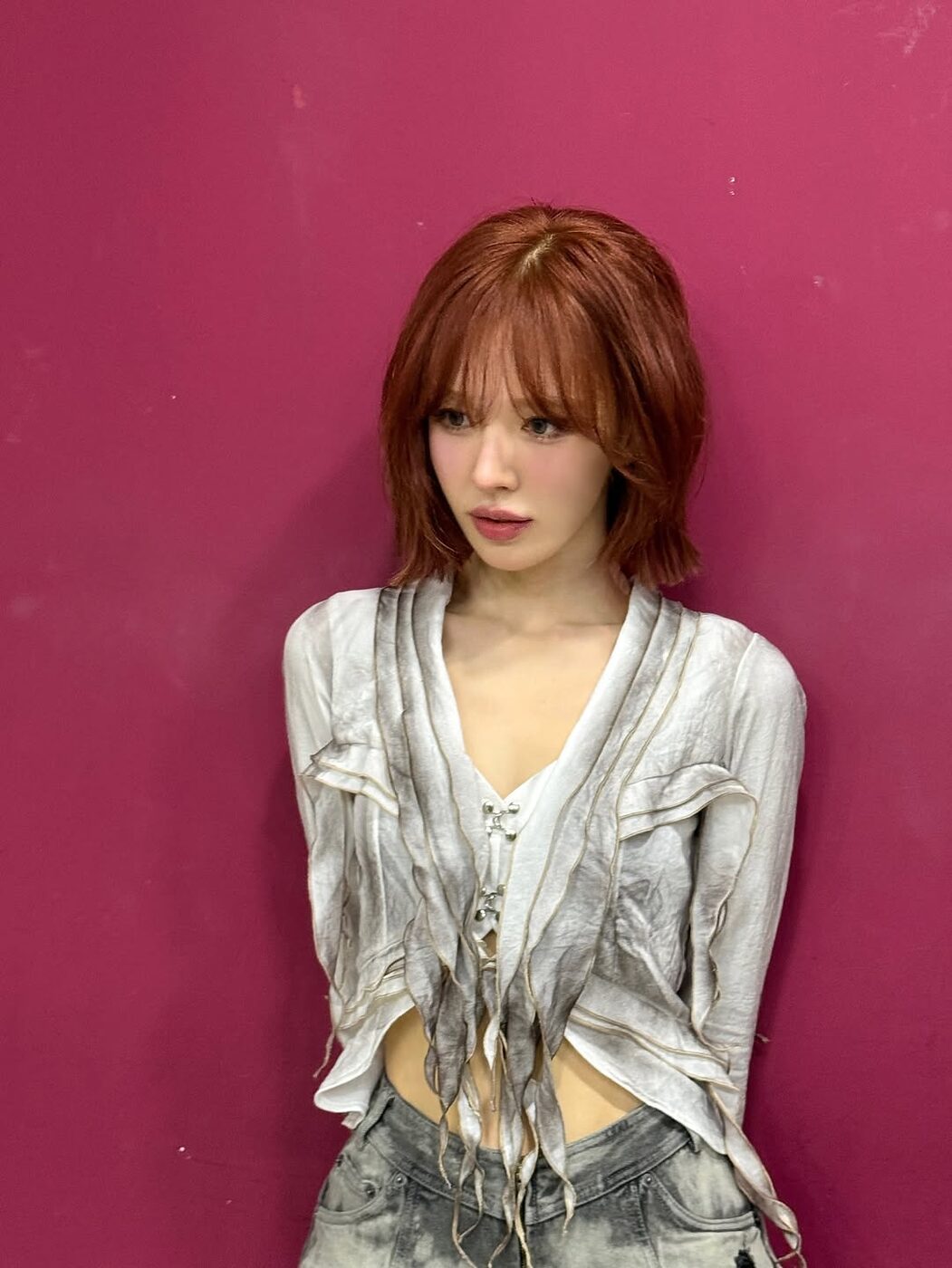 베이비몬스터 파리타는 레이어를 많이 준 중단발 레이어드 컷으로 캐주얼한 분위기를 연출했습니다. 밝은 헤어 컬러와 함께 레이어가 주는 볼륨감이 더해져 발랄하고 사랑스러운 무드가 배가됐어요.