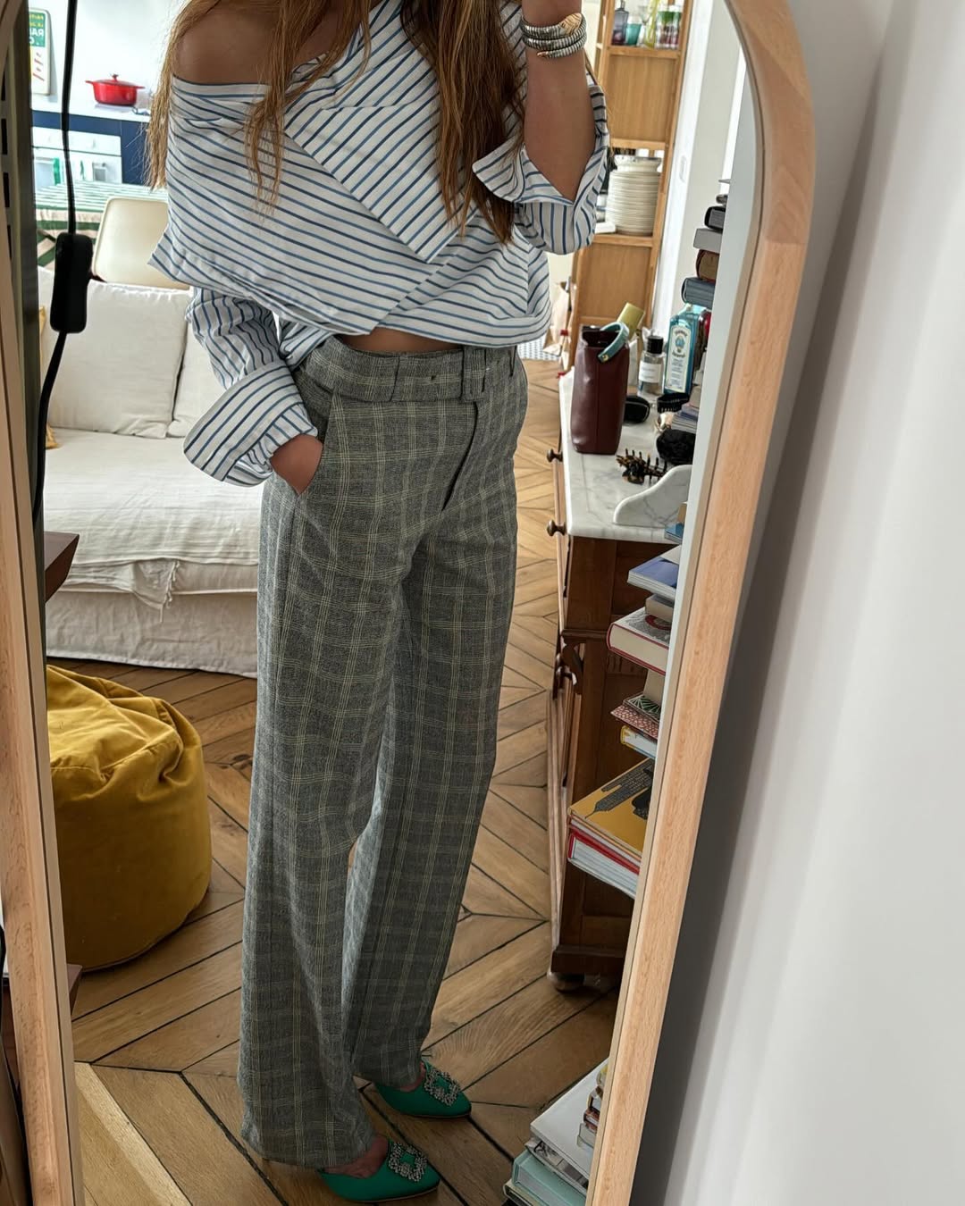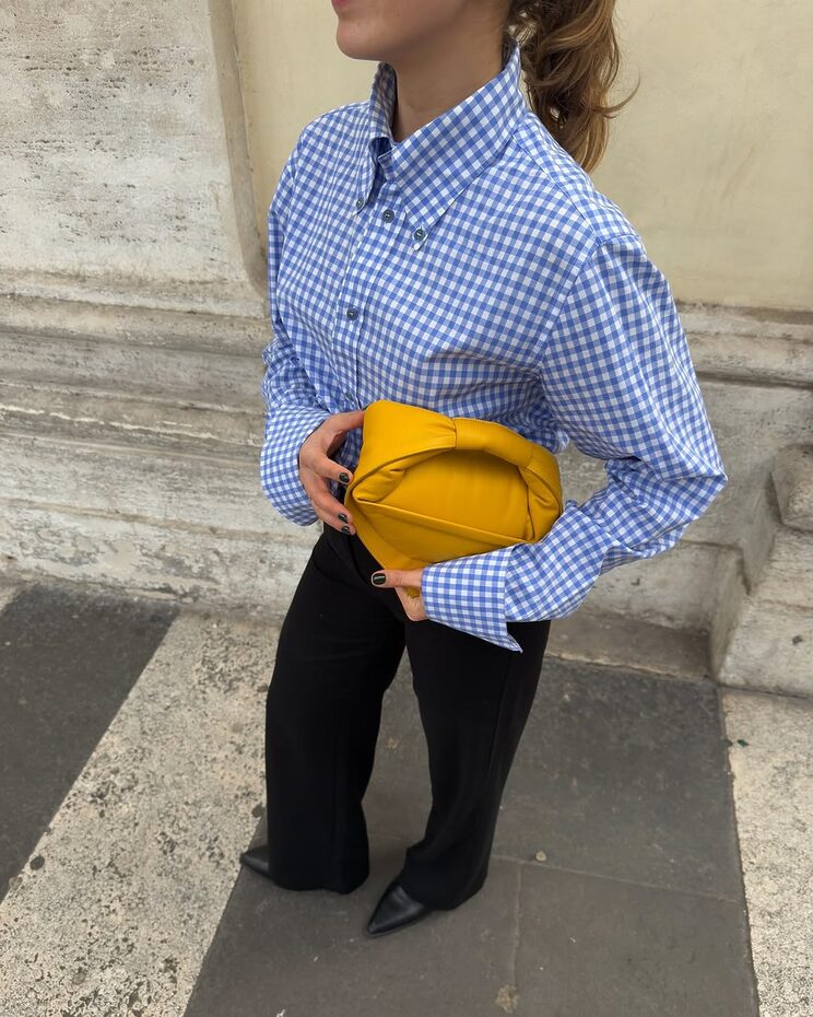 반듯한 사각 체크 패턴의 셔츠는 ‘너드’ 같은 이미지를 풍기는 것이 특징입니다. 어수룩해 보이는 대신 스타일리시하게 차려입은 분위기를 내고 싶다면 독특한 장식이 돋보이는 하의에 주목하세요. 반면 테일러드 팬츠처럼 미니멀한 하의를 매치한다면 시크한 무드가 살아날 겁니다. 무심하게 툭 골라 나온 듯 백 하나를 손에 든 세심한 연출까지 더한다면 그야말로 완벽한 ‘쿨걸’의 룩 탄생!