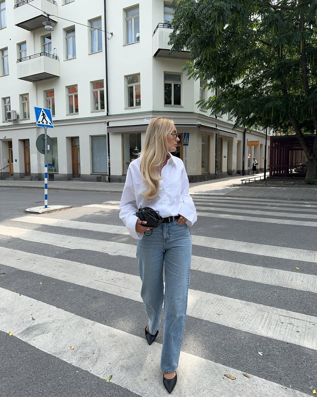 자칫 밋밋하게 느껴질 수 있는 화이트 셔츠는 오히려 본연의 매력에 집중할 때 더욱 빛이 난다는 사실! 블랙 앤 화이트 같은 깔끔한 컬러 조합, 데님 팬츠처럼 베이직한 하의와의 매치로 정석다운 스타일링을 시도해 보세요. 덜어내는 것이야말로 어쩌면 가장 멋져 보이기 쉬운 방법이랍니다.