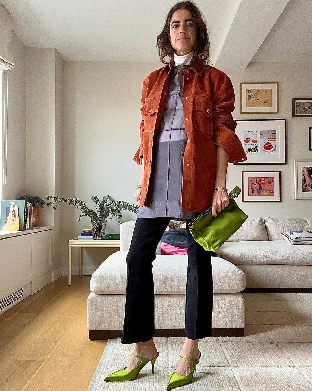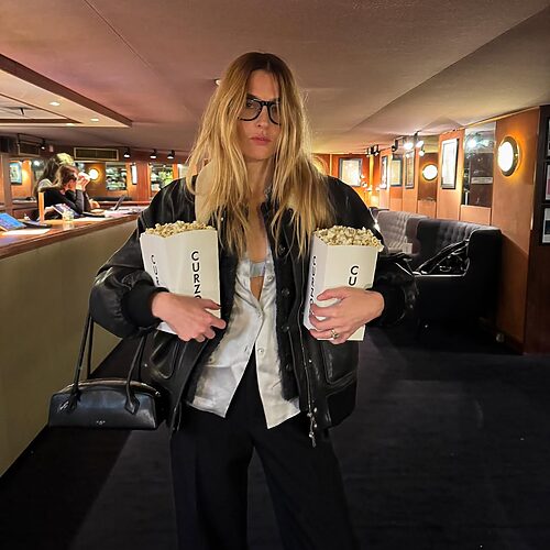 린드라 메딘은 시스루 톱을 전체적인 룩을 완성하는 액세서리처럼 활용했습니다. 없어도 되는 아이템이지만, 더했을 때 룩이 한층 풍성해지는 효과를 주죠. 올겨울에는 다소 무겁게 느껴질 수 있는 울 재킷이나 가죽 아우터 안에 시어한 톱을 매치해 보세요. 터틀넥 톱에 재킷을 바로 매치했다면 평범했을 룩이, 반투명한 오간자 시스루를 사이에 끼워 넣으니 컬러와 실루엣 모두 신선하게 느껴지죠.