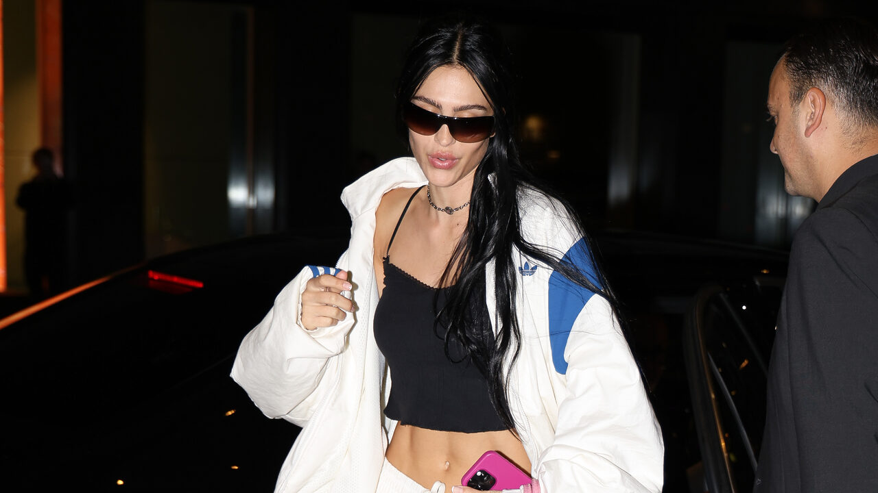 젠지를 대표하는 모델 답게 스포티한 아이템도 시크하게 소화하는 아멜리아. 파란색 스트라이프가 들어간 새하얀 저지 재킷과 팬츠 셋업에 블랙 캐미솔 톱으로 섹시함을 더했습니다. 그리고 마무리는 여전히 곱디 고운 꽃분홍색 토트 백을 들어주었어요. 한 손에 든 핫 핑크색의 폰 케이스가 더블 핑크 포인트를 연출했죠.