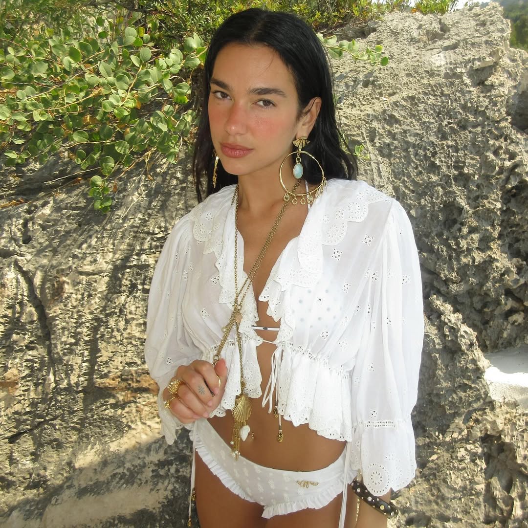 두아의 스타일을 계속 봐왔다면 알 겁니다. 그녀는 이미 지난여름부터 보호 시크에 푹 빠져있었죠. 특히 새하얀 프릴 블라우스를 가지고 스윔슈트로도, 데님 쇼츠와 캐주얼하게 스타일링하며 자주 입었는데요. 여기에 여름 무드 물씬 드는 볼드한 골드 주얼리도 어느 하나 빠짐없이 더해 완벽한 보헤미안 감성을 즐겼죠.
