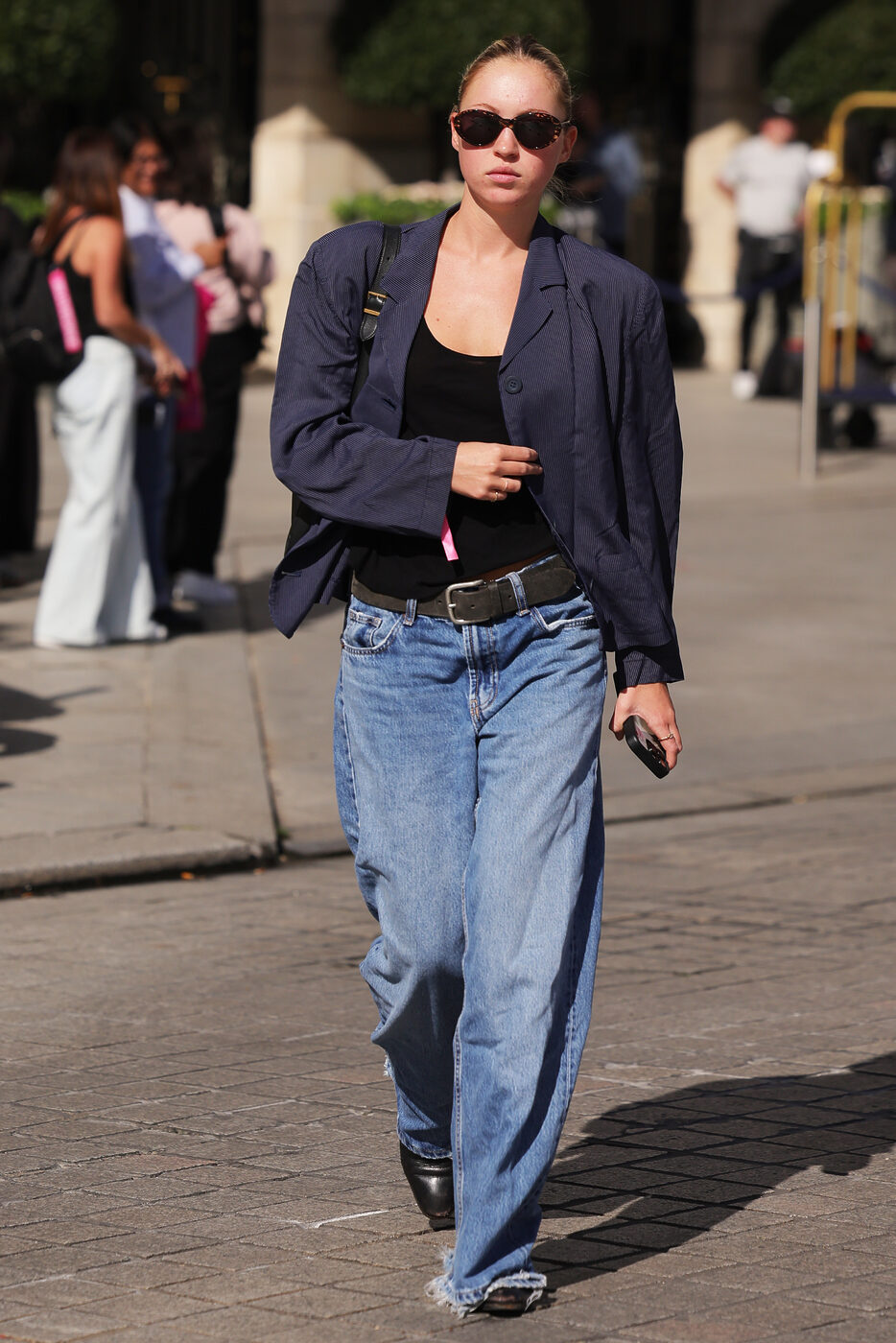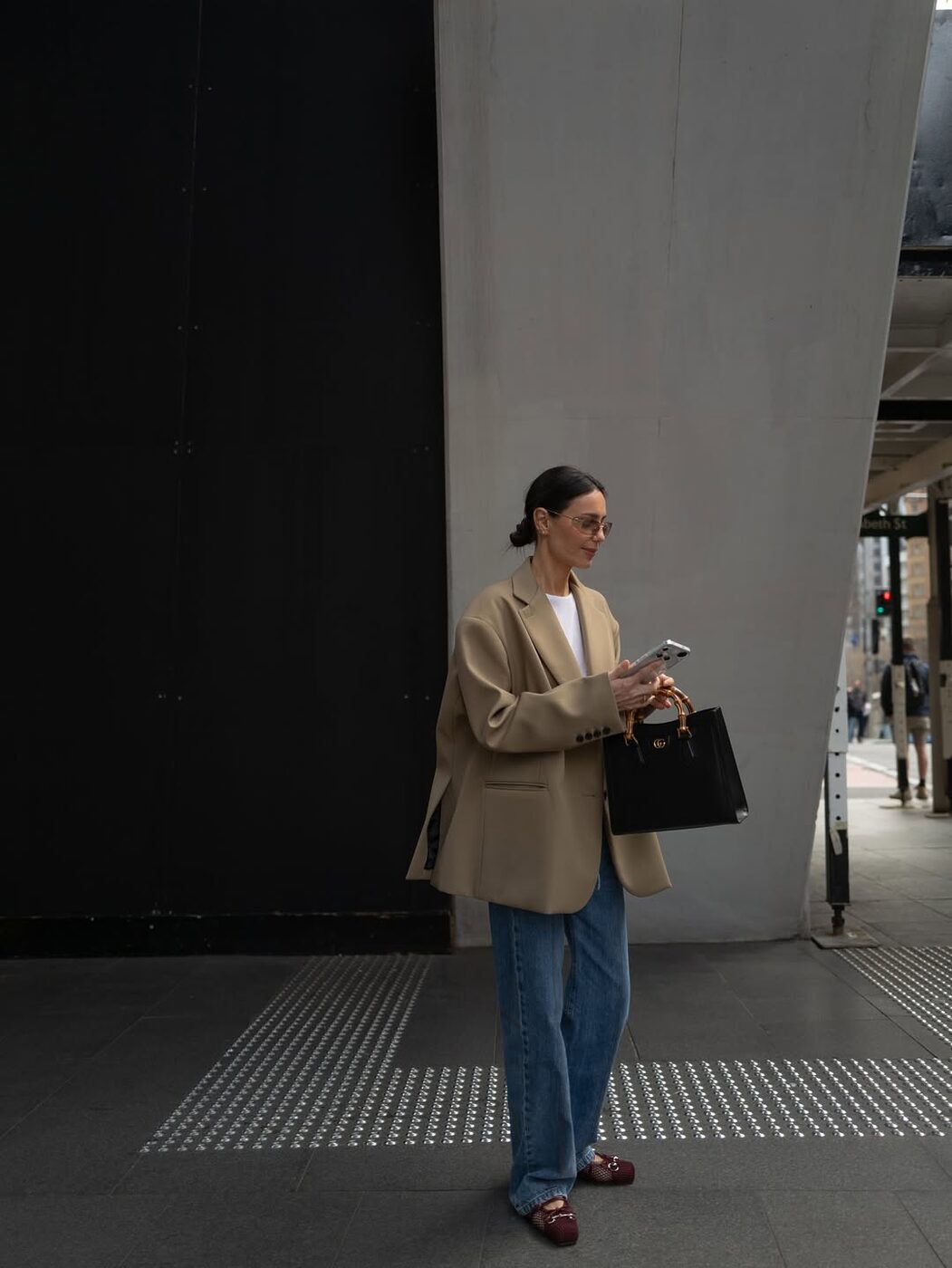 한편 파리에서 포착된 릴라 모스는 어깨 패드가 강조된 레트로한 핏의 재킷을 선택했는데요. 여기에 밑단에 디스트로이드 디테일이 더해진 루즈한 핏의 데님 팬츠를 더해 동시대적인 룩을 완성했습니다.