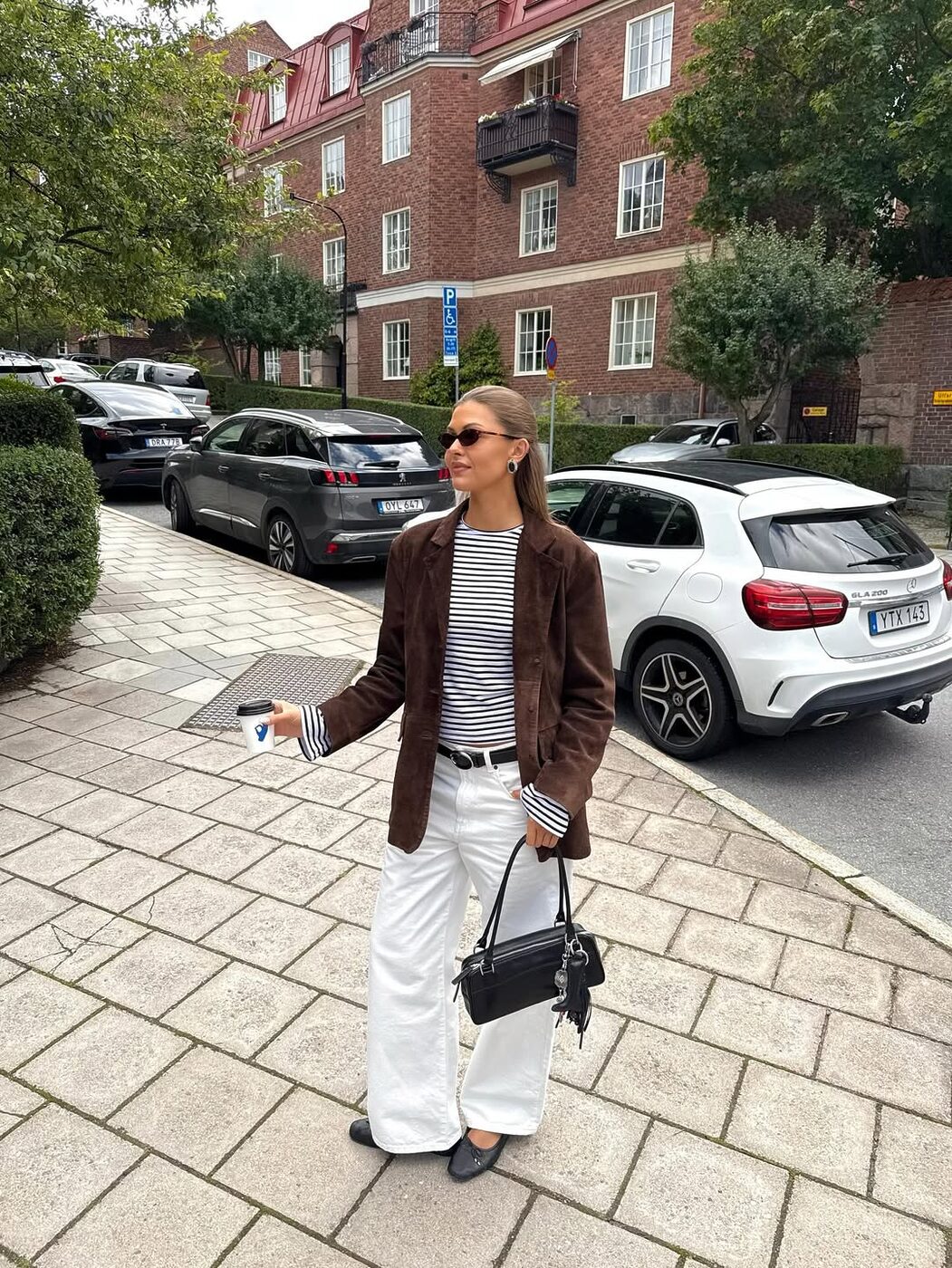 블랙이나 네이비 재킷에 블루 데님 팬츠가 너무 딱딱하게 느껴진다면 소재와 컬러를 바꿔보세요. 브라운 스웨이드 재킷에 화이트 데님 팬츠처럼요. 좀 더 편안하고 캐주얼한 무드를 자아낼 수 있습니다.