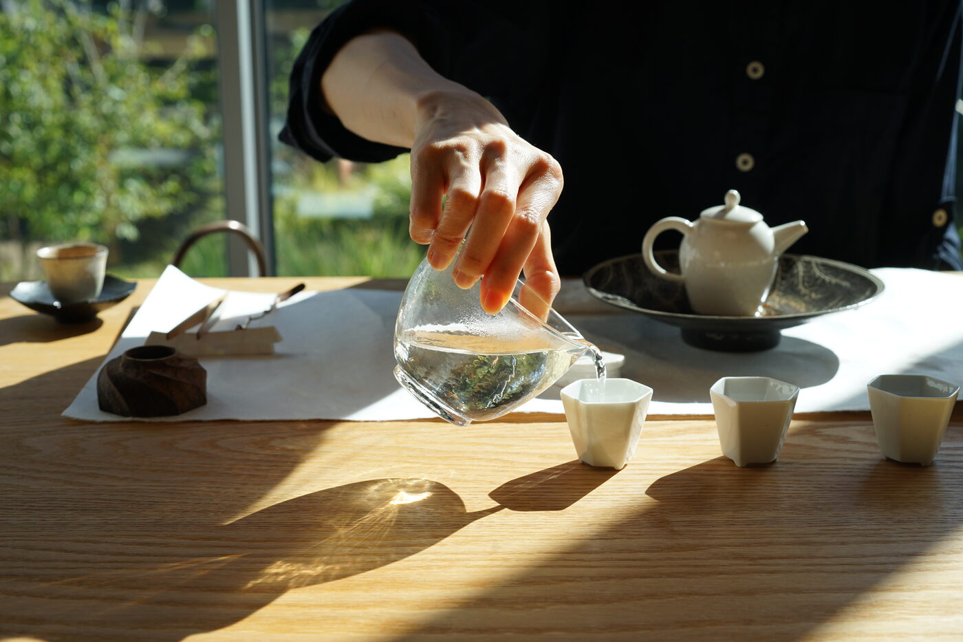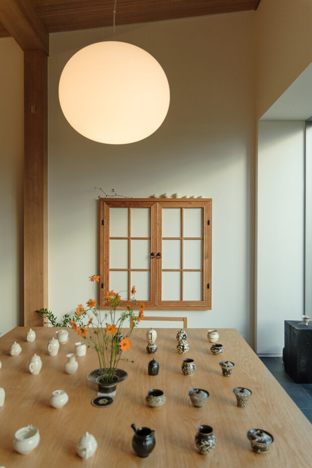10월 3일부터 22일까지, 호월은 특별한 전시 <제주로부터>로 방문의 가치를 더합니다. 이번 전시는 우리나라 3대 차 산지 중 하나인 제주의 정체성을 차 도구라는 매개로 풀어낸 자리입니다. 제주의 흙, 돌, 나무 같은 지역의 물성을 깊이 들여다보고, 그 위에 공예적 실험을 더했죠. 도자기, 유리, 금속, 목선반 등 다양한 분야의 공예가 14명이 참여해 제주의 영감을 기물로 표현합니다. 제주 로컬 흙으로 빚은 도자기, 현무암을 활용한 유리 모빌, 벚나무와 멀구슬나무로 만든 목기 등이 대표적입니다.