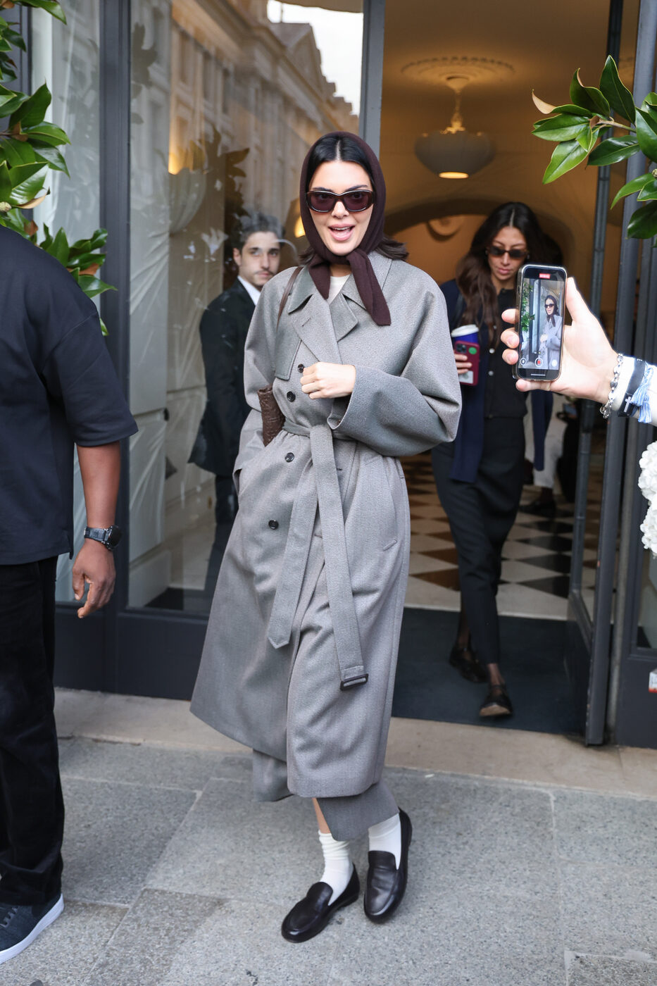 가방 또한 스카프와 선글라스와 같은 브라운으로 든 켄달은 전체적인 스타일링을 마무리하는 아이템으로 자신이 가장 잘 하는, 럭셔리와 로우키 무드를 기가 막히게 섞어 연출했습니다. 바로 발목까지 오는 흰 양말과 검정 로퍼였죠. 평소 그녀의 패션을 눈여겨본 이들이라면 켄달이 얼마나 로퍼에 진심인지 알 수 있어요. 심플한 블랙 로퍼에 흰 양말로 모던하고 클래식한 트렌치 룩을 완성한 톱 모델, 왠지 동화 속 성냥팔이 소녀가 부자가 된다면 이런 모습이 아닐까 생각이 듭니다.