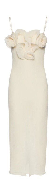 한동안 예비 신부들의 워너비 웨딩 룩이 될 것만 같은 김나영의 패셔너블한 드레스는 모두 마그다 부트림(Magda Butrym) 제품으로, 전통적인 브라이덜 드레스가 아닌 레디투웨어 스타일의 드레스를 찾고 있는 야외 혹은 스몰 예식을 꿈꾸는 이들에겐 최적의 선택이 될 듯합니다.