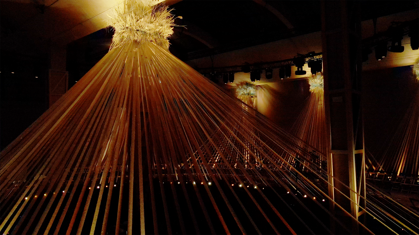 무대는 전통적인 축제에서 착안했다. 8,000m 길이의 헴프 리본과 천연 식물, 코르크로 만든 거대한 마이폴 구조물이 중심에 세워졌고, 아일랜드의 민속 단체 Armagh Rhymers가 만든 마이폴 크라운이 그 위를 장식했다. 이는 인간과 자연의 순환, 그리고 재생을 상징한다. 음악은 A. G. 쿡(A. G. Cook) 이 맡아 어쿠스틱과 신시사이저 사운드가 교차하며 긴장과 해방의 분위기를 만든다. 물, 흙, 불의 원소적 소리를 테크노 리듬과 결합해 몽환적이면서도 힘 있는 무드를 완성했다.