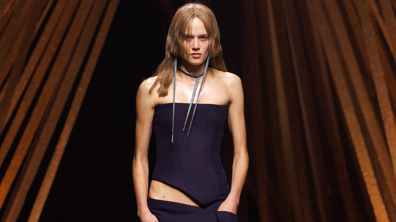 로빈 하디의 영화 위커 맨(The Wicker Man, 1973)에서 영감을 받은 이번 컬렉션은 억눌린 욕망과 자유로움 사이의 긴장을 표현한다. 제복은 해체되고, 재킷은 도시적인 감각으로 새롭게 재구성했다. 비대칭으로 잘린 포켓과 절제된 실루엣은 맥퀸의 테일러링 전통을 현대적으로 풀어냈다. 유니폼 소재로 만든 뷔스티에 드레스, 몸을 따라 조여지는 셔츠와 포플린 드레스, 낮게 걸쳐진 스커트와 팬츠 등은 움직임에 따라 자연스럽게 형태가 변한다. 상징적인 ‘범스터’ 팬츠는 광택 있는 메탈 버클로 길이를 조절할 수 있도록 새롭게 만들어졌다.