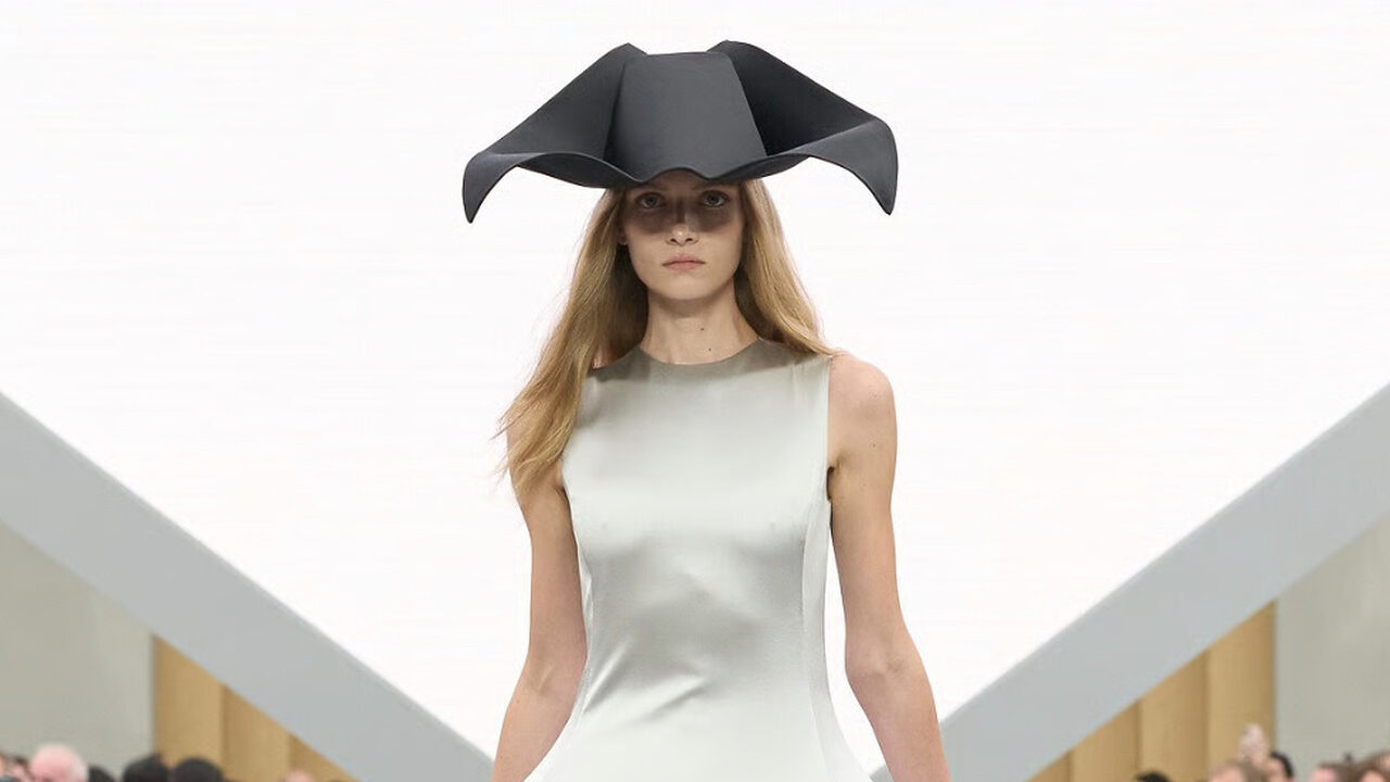 새로운 액세서리 라인업은 탄탄했다. 아카이브 드레스에서 영감을 받아 새롭게 선보인 ‘시갈레(Cigale)’ 백을 비롯해 디올 까나주를 넣은 부드러운 숄더백, 볼링백처럼 캐주얼하게 재해석한 레이디 디올 백이 새로운 시그니처 가방이 될 준비를 완벽히 마친 모습이었다. 스트랩에 금속 ‘Dior’ 하드웨어가 박힌 느슨한 스웨이드 핸드백은 노트북을 넣어도 무리가 없을 정도로 실용적 디자인이 돋보였다. 클래식한 펌프스는 토끼 귀 모양 장식을 얹어 장난스러운 위트를 더했고, 무슈 디올이 사랑한 거대한 플라워 코르사주를 장식한 뮬과 디올의 시그니처 ‘C’와 ‘D’를 오른쪽과 왼쪽에 짝짝이로 장식한 펌프스, 로고를 넣은 금장 거울 펜던트를 박은 로퍼 등이 고루 시선을 끌었다. 특히, 모자 디자이너 스티븐 존스(Stephen Jones)가 디자인한 일그러진 형태의 트리콘(Tricorne) 모자에 주목할 것! 이는 과거의 유산을 완전히 새로운 관점으로 해석하겠다는 조나단 앤더슨의 의지를 상징한다. 쇼 노트에 담긴 일그러진 모자에 대한 설명은 다음과 같다. ‘역사를 상자에 가둬두면 내파가 일어난다. 모자도 마찬가지로 스스로 내파한다(Putting history into a box creates an implosion — hats implode into themselves)’