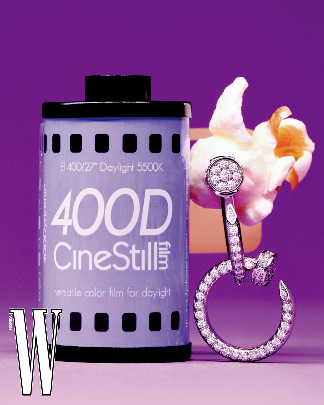 화이트 골드에 다이아몬드를 세팅한 저스트 앵 끌루 이어링은 Cartier 제품.