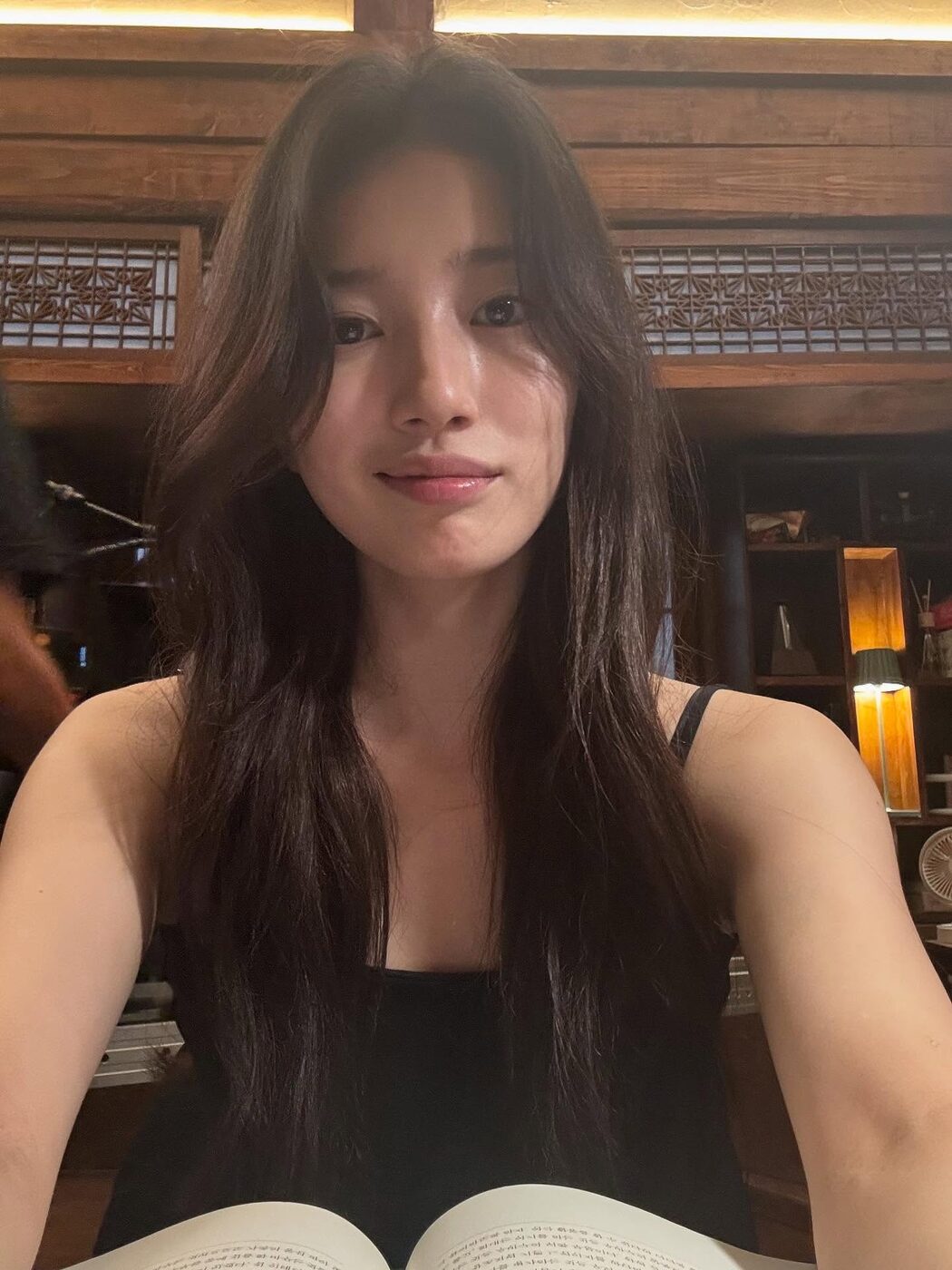 수지는 본래 풍성한 모발과 탄탄한 뿌리 볼륨으로도 유명합니다. 덕분에 이번 스타일은 한층 더 완성도 있게 연출되었습니다. 뿌리부터 자연스럽게 이어지는 컬이 얼굴을 작아 보이게 하고, 옆모습에서도 볼륨감이 살아 있어 가볍게 묶기만 해도 세련된 무드를 내었죠.