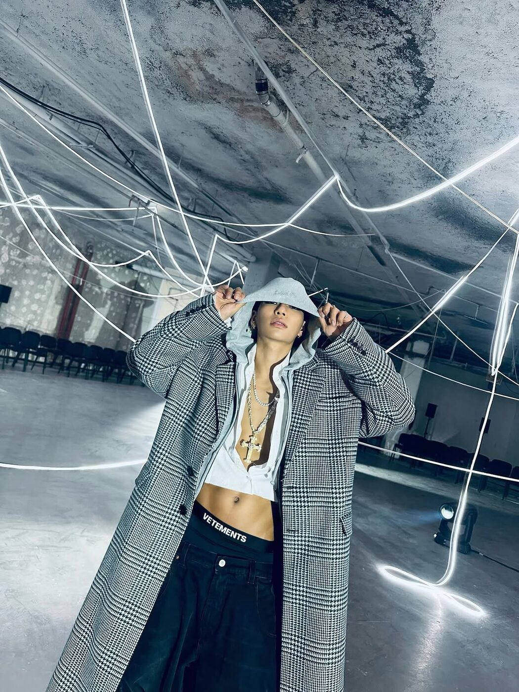 올데이 프로젝트의 파리 패션 위크가 더욱 재밌는 이유는 무대 위에서는 보지 못했던 다양한 조합의 유닛을 볼 수 있기 때문입니다. 베일리와 영서는 극과 극의 실루엣을 선보이며 꾸레쥬 특유의 미래적이고 시크한 룩을 완벽히 소화했는데요. 몹와이프 같은 풍성한 퍼 코트를 입은 베일리와 달리 영서는 타이트한 레더 드레스를 착용해 서로 다른 개성을 살리면서도 블랙 레더 싸이하이 부츠로 통일감을 줘 한 팀이라는 아이덴티티를 잃지 않았죠.