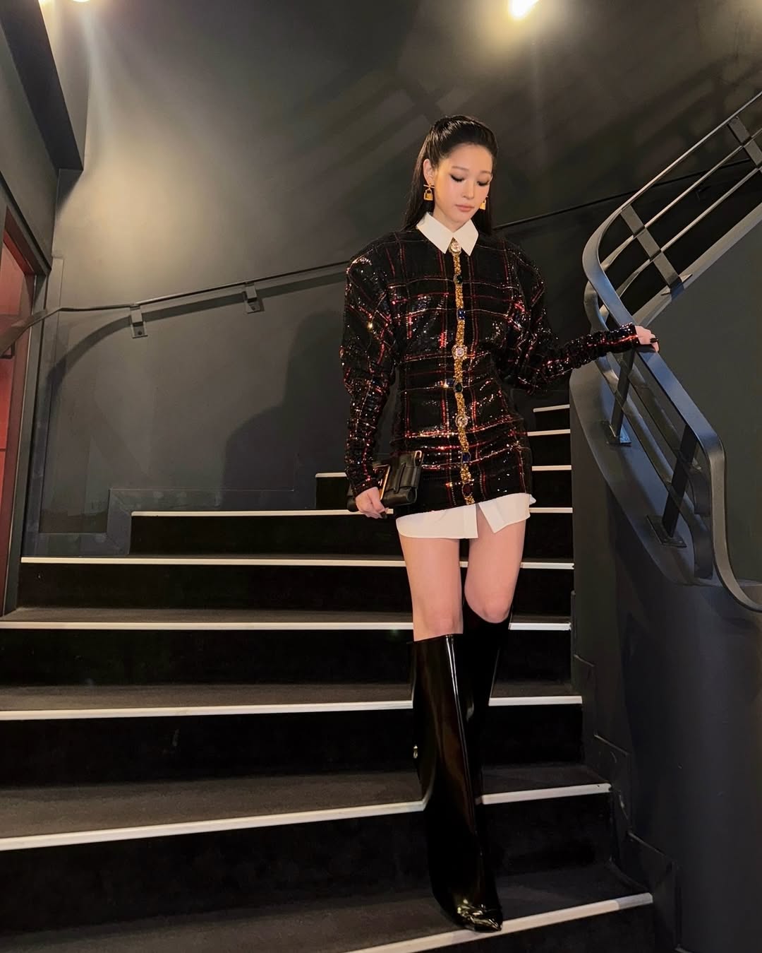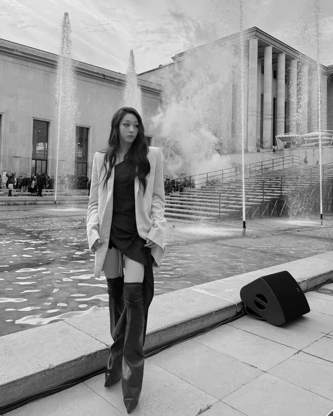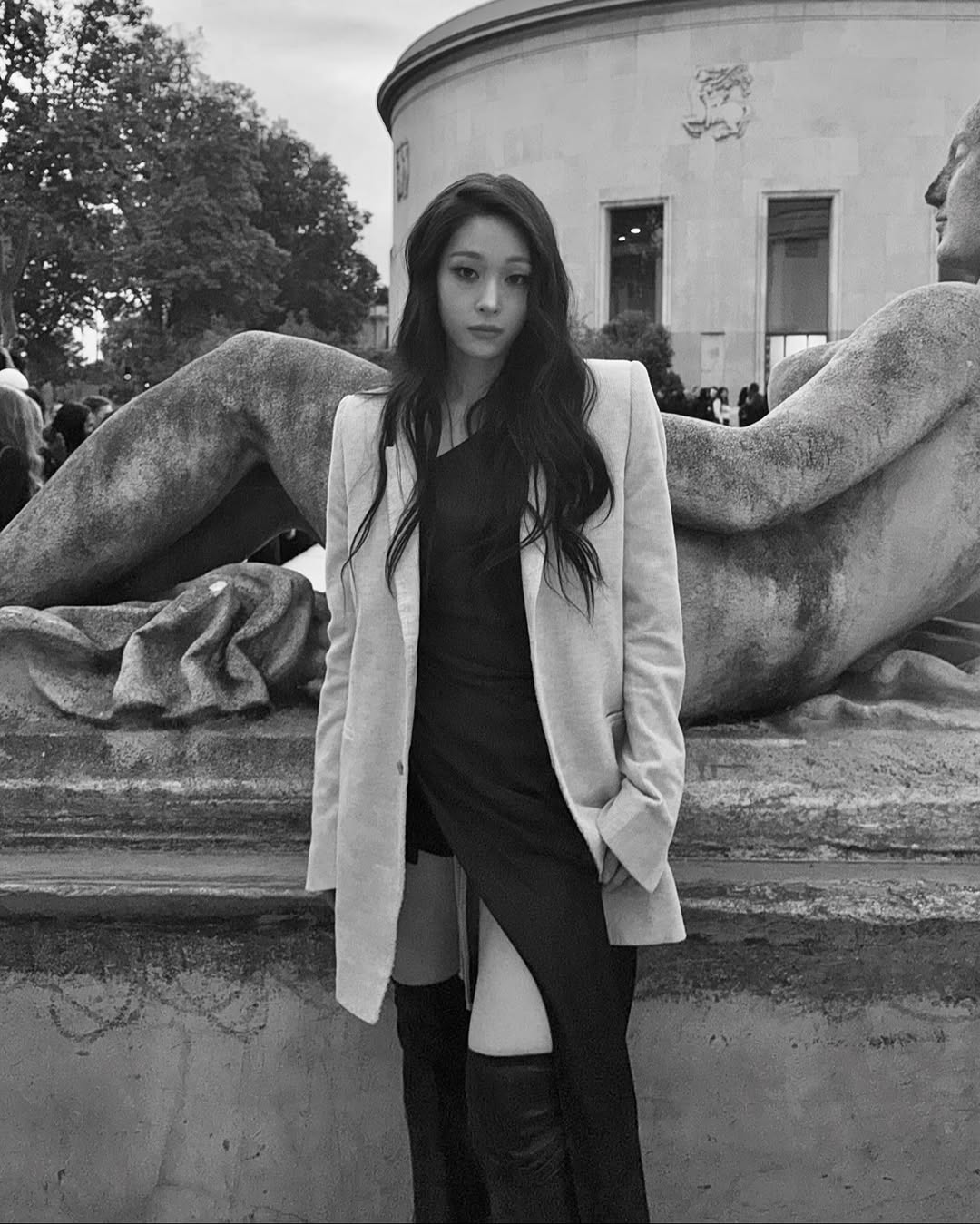 이번 파리에서는 특히나 여성 멤버들의 활약이 대단했는데요. 그중에서도 가장 바쁜 일정을 보낸 건 다름 아닌 애니였습니다. 발망에서는 쥬얼 장식의 화려한 시퀸 드레스를 입고 나타나 우아함을 뽐낸 반면 릭 오웬스에서는 미니멀한 재킷과 드레스에 벨보텀 쉐잎의 부츠로 힘을 준 절제된 세련미를 보여줬죠. 마지막 발렌시아가에서는 강인함이 느껴지는 레더 드레스와 글로브로 다크한 매력이 돋보였습니다.