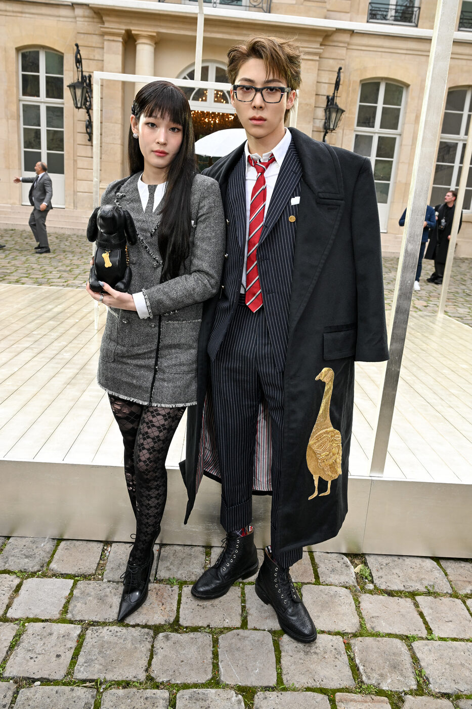 화려했던 올데이 프로젝트의 파리 패션 위크는 애니와 우찬이 함께 참석한 톰 브라운 쇼로 그 마지막 대미를 장식했습니다. 우주적 판타지를 담은 이번 쇼에 맞게 우찬은 단정한 핀 스트라이프 슈트에 느슨하게 맨 타이와 볼드한 뿔테안경으로 엉뚱한 매력을 더했는데요. 평소와 다른 풀 뱅 스타일로 나타난 애니는 톰 브라운의 상징인 그레이 슈트 드레스에 귀여운 퍼피 클러치와 아가일 패턴의 스타킹을 더해 키치한 프레피 스타일을 보여줬죠. 이제 데뷔한지 반년도 채 되지 않은 올데이 프로젝트가 이번 파리에서 보여준 영향력은 대단했는데요. 다음엔 또 어떤 멋진 브랜드의 러브 콜을 받을지 기대가 됩니다.