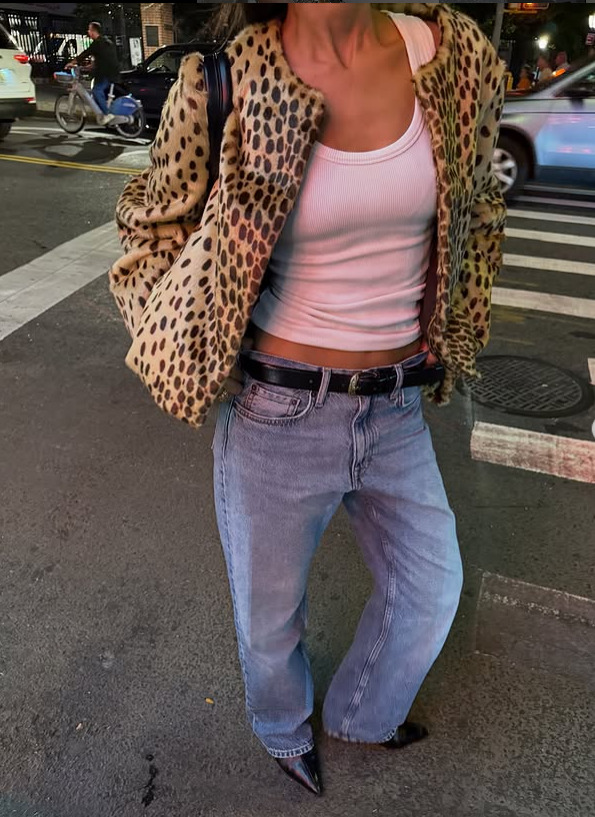 가을, 겨율 시즌에 빠질 수 없는 레오퍼드 패턴의 아우터를 가장 시크하게 입는 법? 바로 이 로우 라이즈의 데님 팬츠와 함께 입으세요. 이너는 물론 베이식한 탱크 톱이면 충분합니다. 쿨 걸의 공식 옷차림으로 등극한 슬리브리스 톱과 와이드 실루엣의 데님 팬츠 조합, 중요한건 허리 라인이 슬쩍 보여야 한다는 거예요.