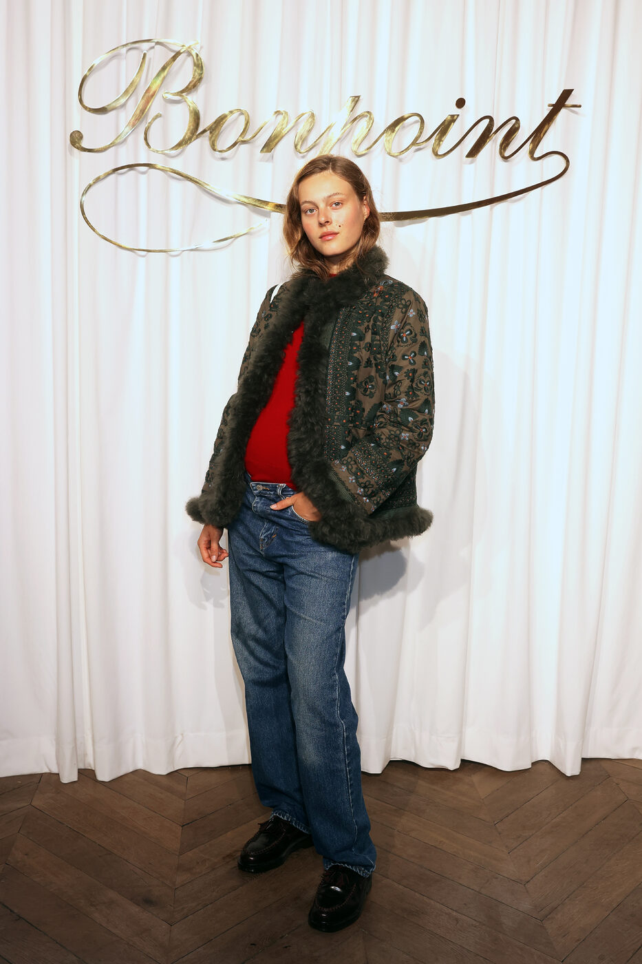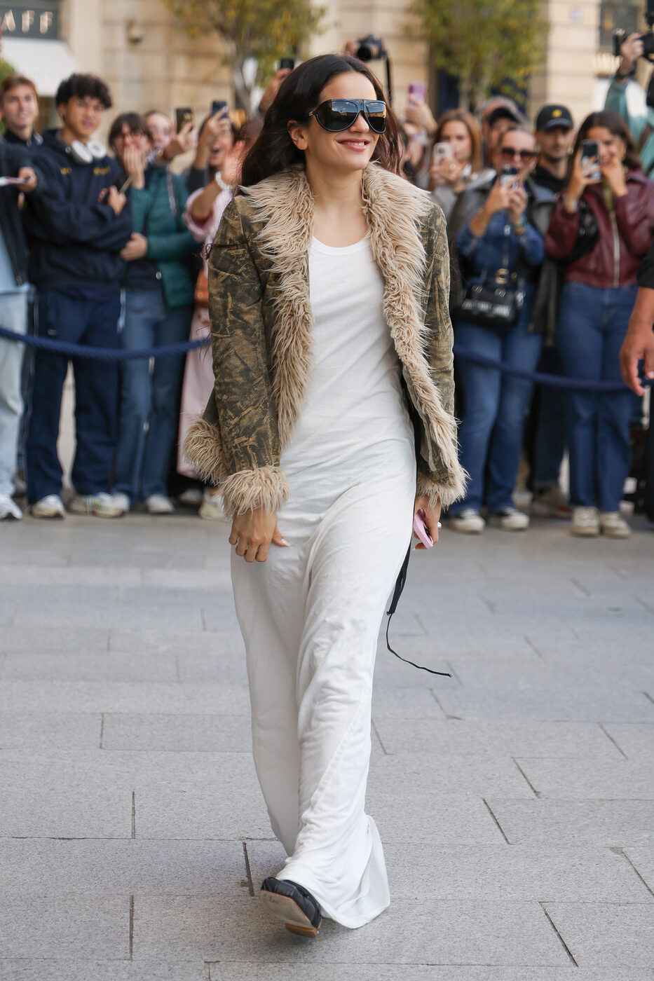 로잘리아는 빈티지한 데님 프린트 더해진 아우터를 골랐습니다. 얇은 저지 소재의 원피스를 입었지만 그녀의 룩이 추워 보이지 않았던 이유는 바로 퍼 트리밍 디테일 덕분! 볼드한 선글라스로 로잘리아식의 힙한 포인트도 놓치지 않았고요.