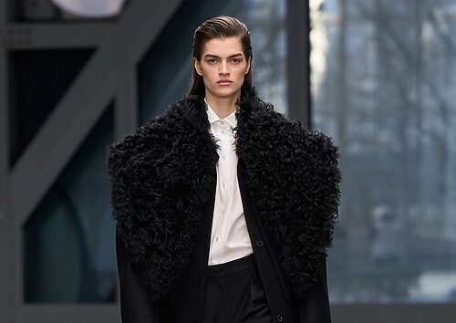 컬렉션의 오프닝은 배우 산드라 휠러(Sandra Hüller)가 장식했다. 워크 재킷 위에 파란 앞치마를 두르고 등장한 그녀는 노동의 무게와 고단함을 이야기하는 얼굴이었다. 이어 남녀 모델들이 앞치마를 두르고 런웨이를 걸었다. 런웨이에는 전문 모델 이외에 배우 밀라 요보비치(Milla Jovovich), 헤일리 게이츠(Hailey Gates), 리처드 E. 그랜트(Richard E. Grant), 토와 버드(Towa Bird), 사틴 배송(Sateen Besson) 등 배우, 음악가, 포토그래퍼, 아티스트들이 대거 등장해, 마치 다큐멘터리의 한 장면같은 런웨이 분위기를 만들어갔다.