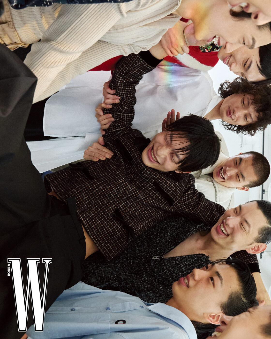 왼쪽부터 시계방향으로 | 크롭트 가죽 재킷, 안에 입은 탱크 톱, 데님 팬츠, 부츠는 Rick Owens, 데님 재킷과 패치워크 데님 팬츠, 벨트는 Louis Vuitton, 네이비블루 캐시미어 톱, 빨강 튜브 톱, 그레이 팬츠는 Miu Miu, 해골 프린트 블라우스, 검정 팬츠는 McQueen, 네이비블루 니트와 그레이 니트, 검정 팬츠, 안경은 Miu Miu, 꽃무늬 티셔츠, 데님 팬츠는 Prada, 회색 재킷, 셔츠, 팬츠, 타이, 장갑은 Saint Laurent by Anthony Vaccarello, 자수 니트와 팬츠는 Burberry 제품.