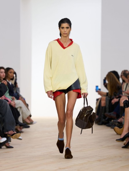 젋은 에너지, 스포티한 룩이 가득했던 잭 & 라자로의 로에베 쇼에도 ‘칠칠 맞게’ 지퍼가 열린 백들이 등장했습니다. 디올과 마찬가지로 핸들이 하나여서 반대쪽이 자연스럽게 쳐지는 쉐입이 특징인 백인데요. 네모 반듯하지만 지퍼를 한 껏 열어 놓은 디테일 덕분에 쿨한 바이브가 가득한 스타일링이 완성됐죠.