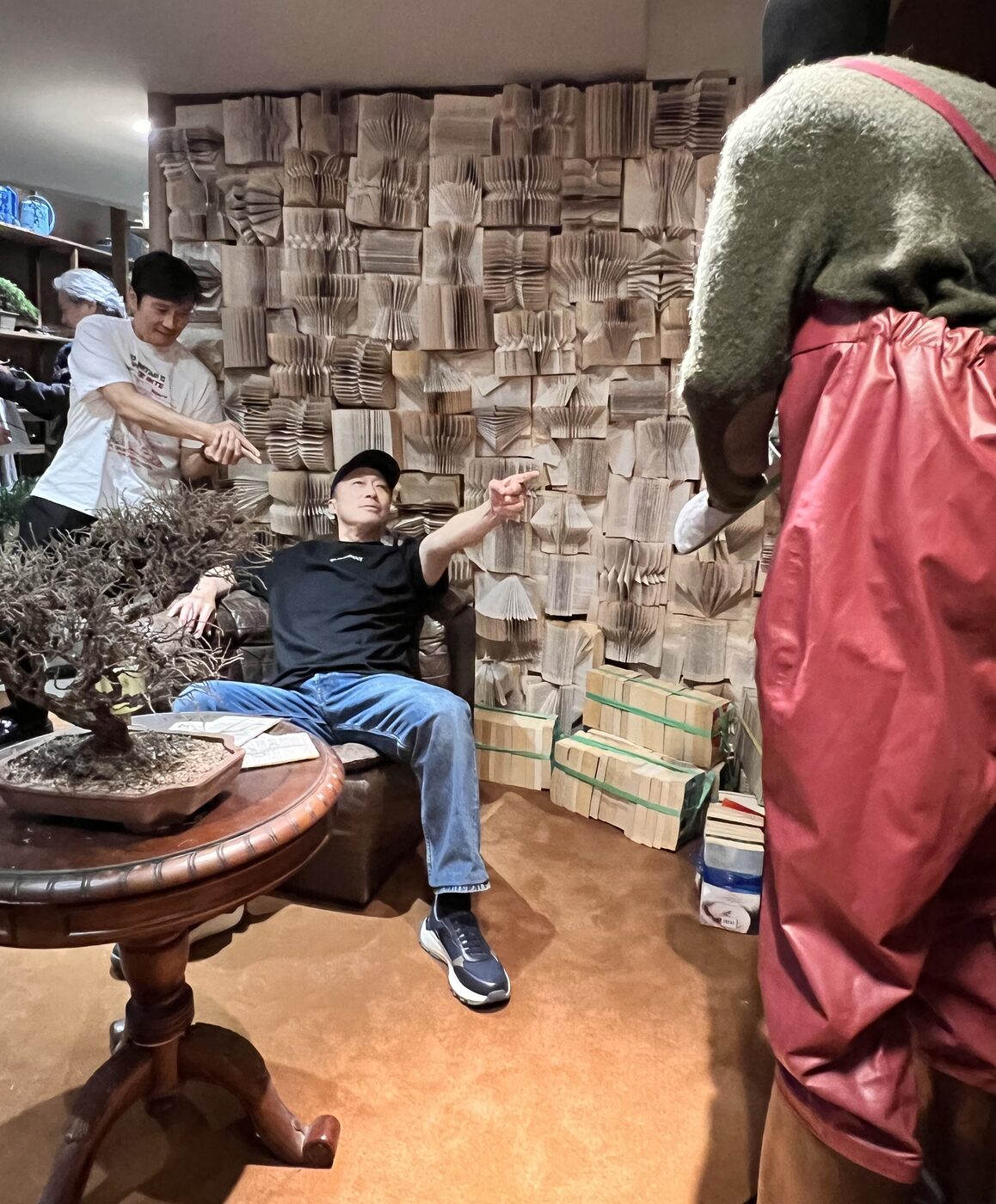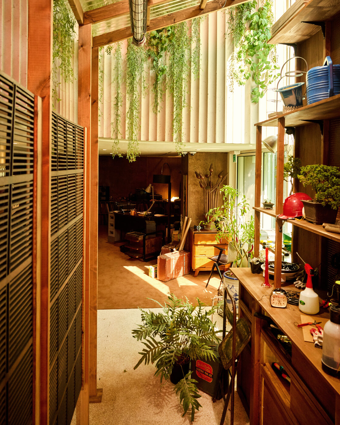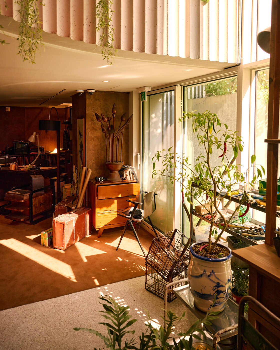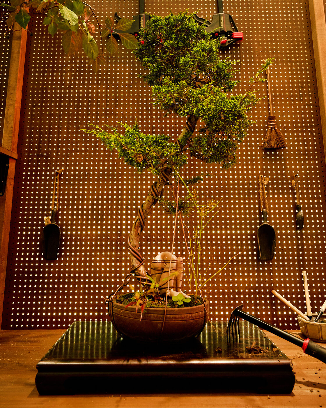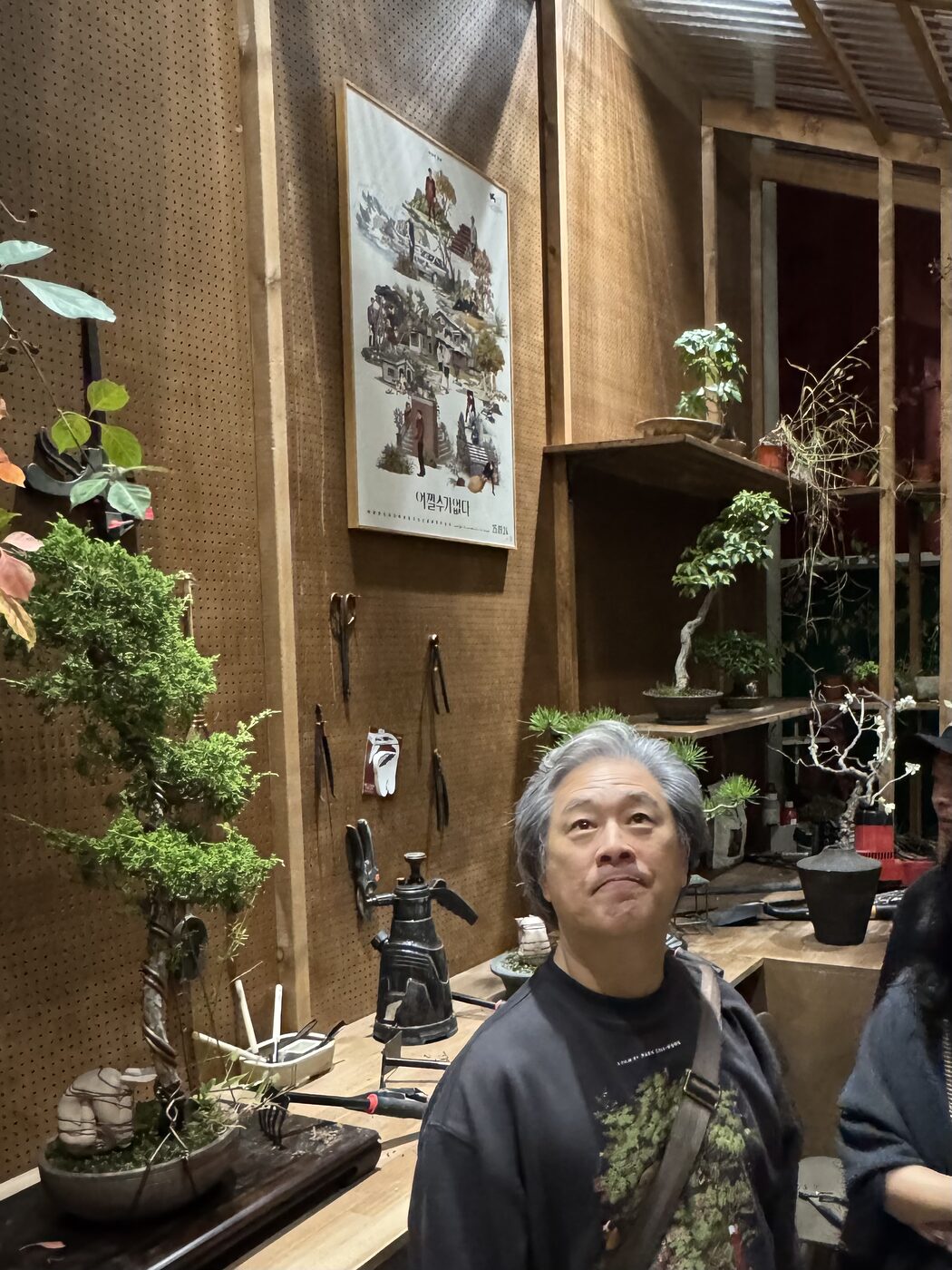 먼저 2층에 위치한 ground by COMFORT에는 영화 속 풍경을 그대로 옮겨온 듯한 전시가 펼쳐져 있습니다. 주인공의 삶을 모티브로 한 ‘만수의 온실’과 ‘범모의 음악 감상실’이 한 공간에 어우러진 이곳에 들어서면, 인물들의 삶을 바로 옆에서 지켜보는 듯한 기분이 듭니다. 가장 먼저 보이는 것은 만수가 많은 시간을 보냈던 바로 그 온실. 스틸 컷에도 등장했던 고추 화분과 그가 정성껏 기른 분재들, 각종 원예 도구가 빼곡하게 벽면을 채우고, 어쩐지 비밀을 숨긴 듯한 나무가 심겨 있습니다. 특히 분재들 사이에는 영화의 한 장면을 상징하는 오브제가 숨겨져 있으니, 찾아보는 재미도 함께 느껴보세요!