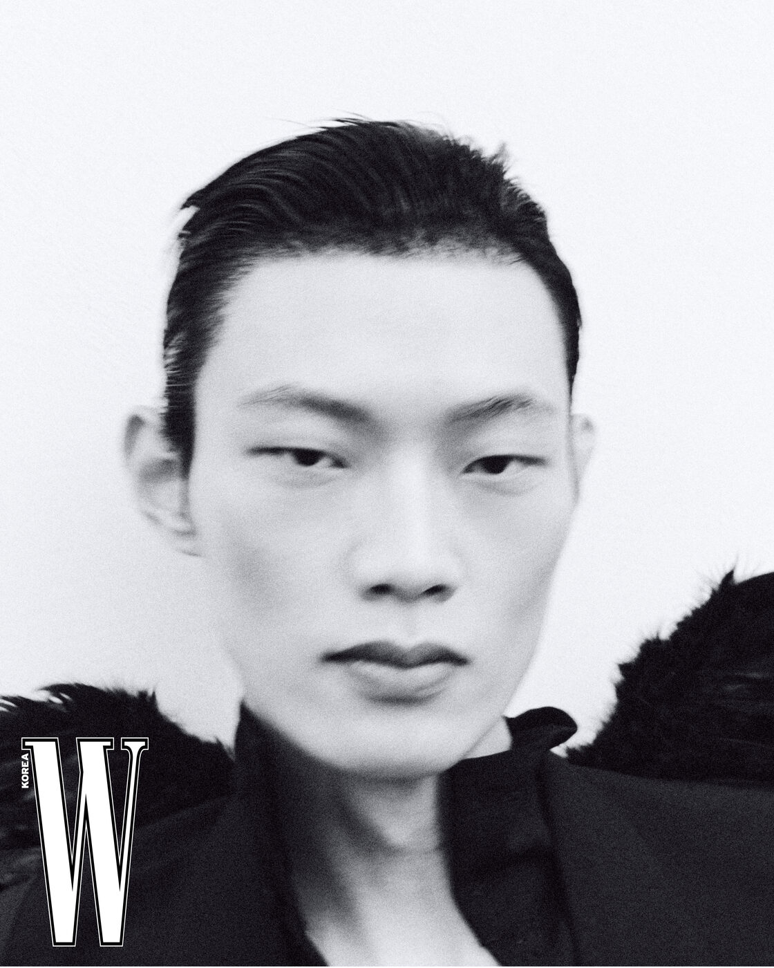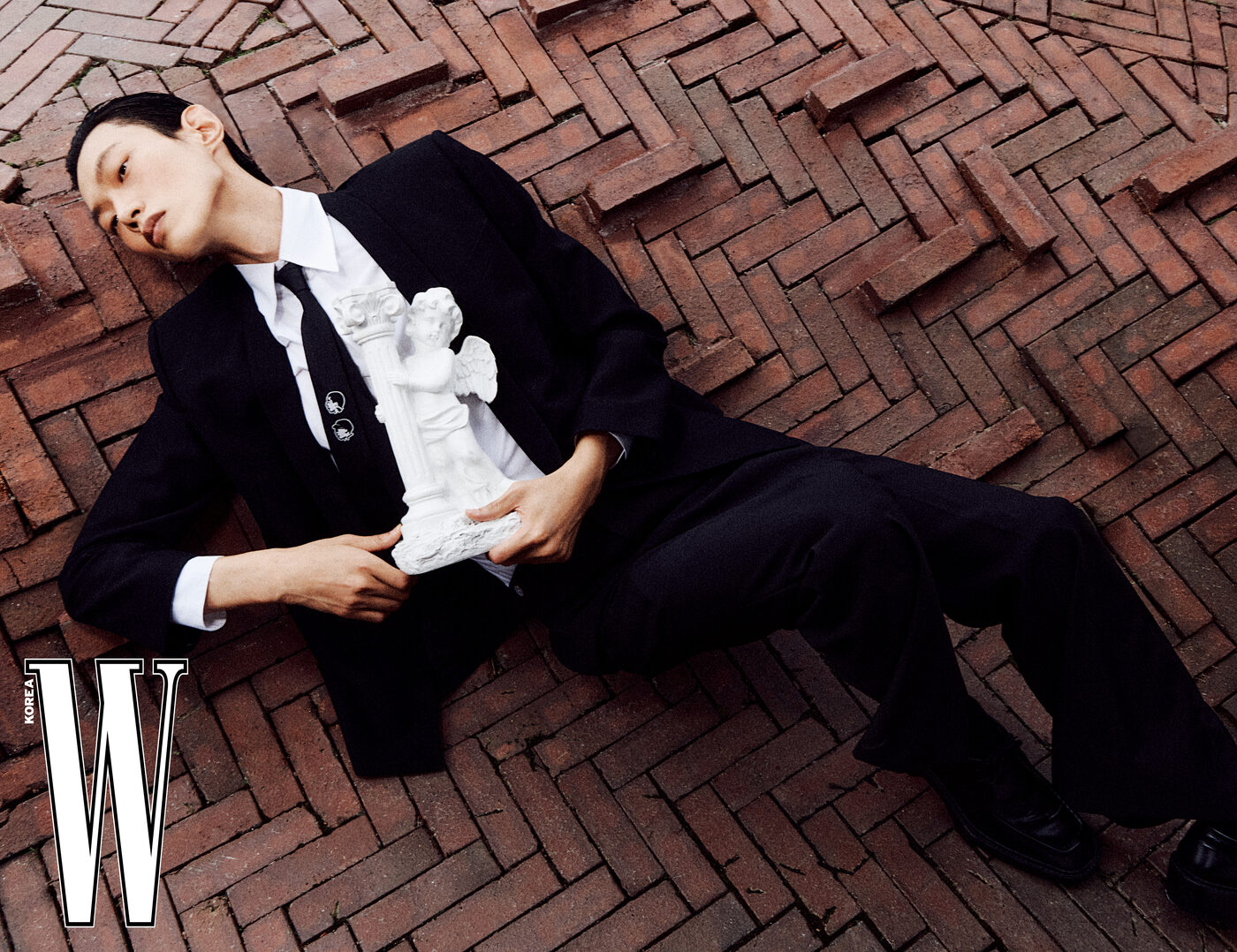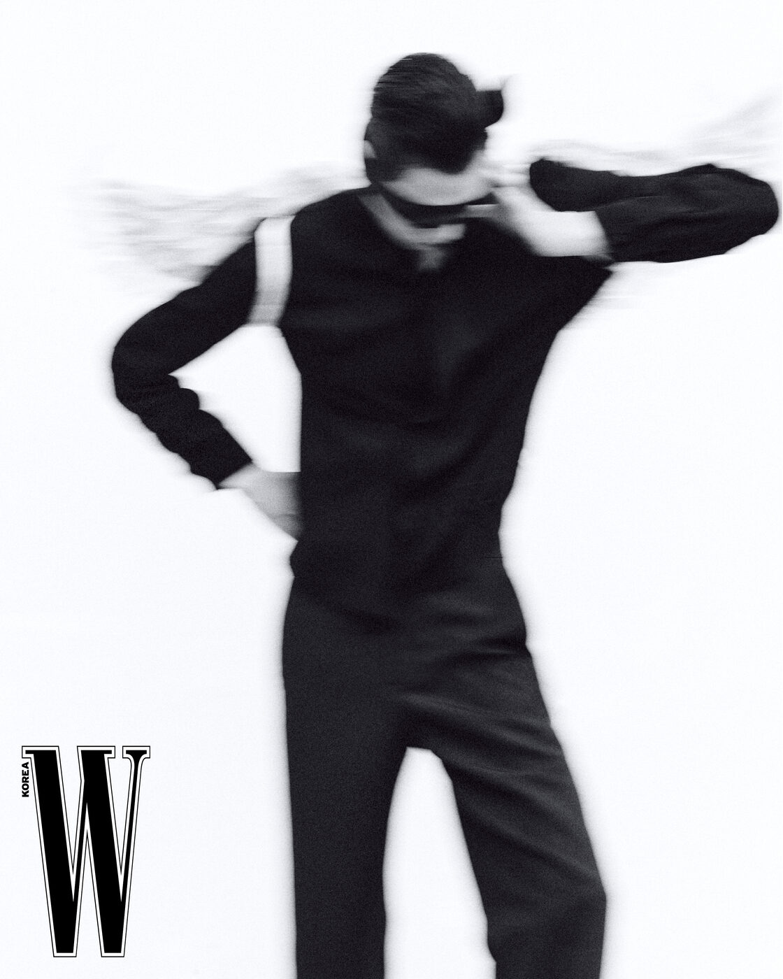 검정 블라우스와 팬츠는 Dior Men 제품.
