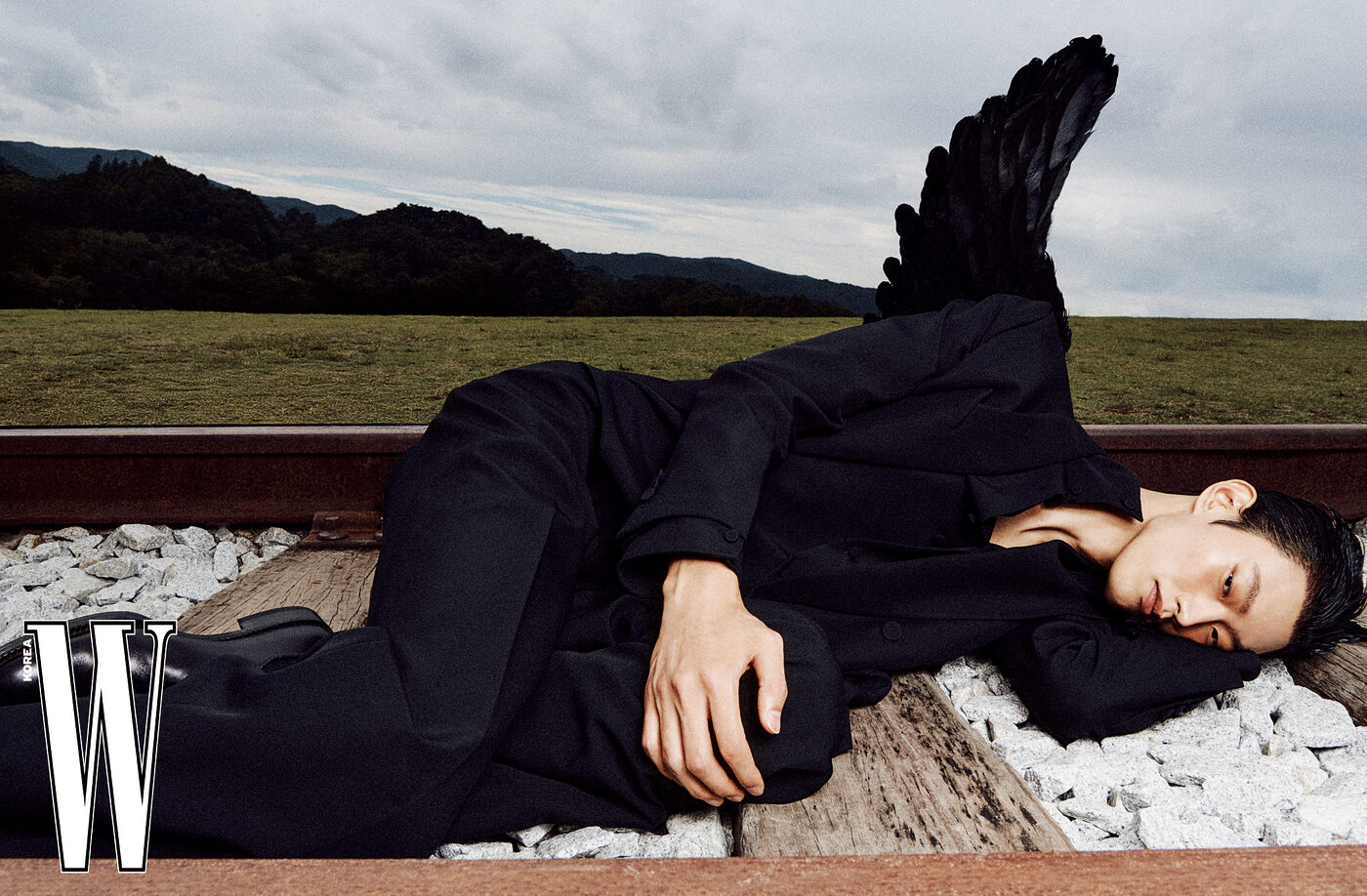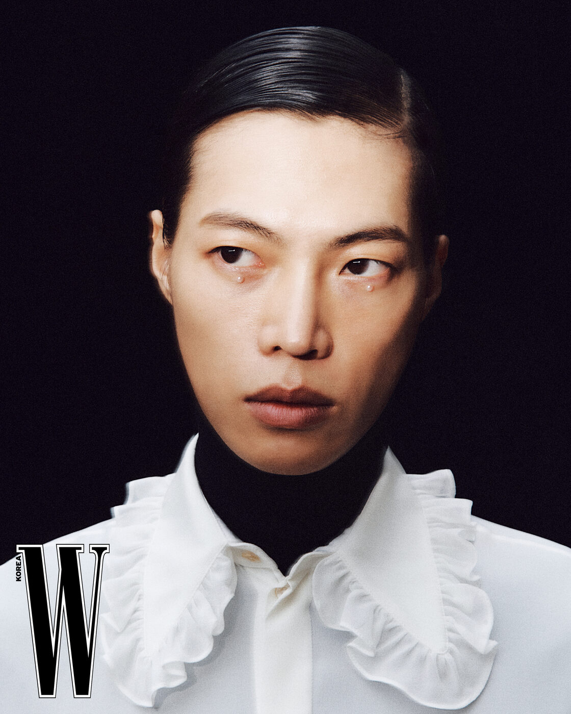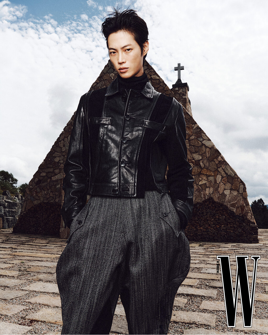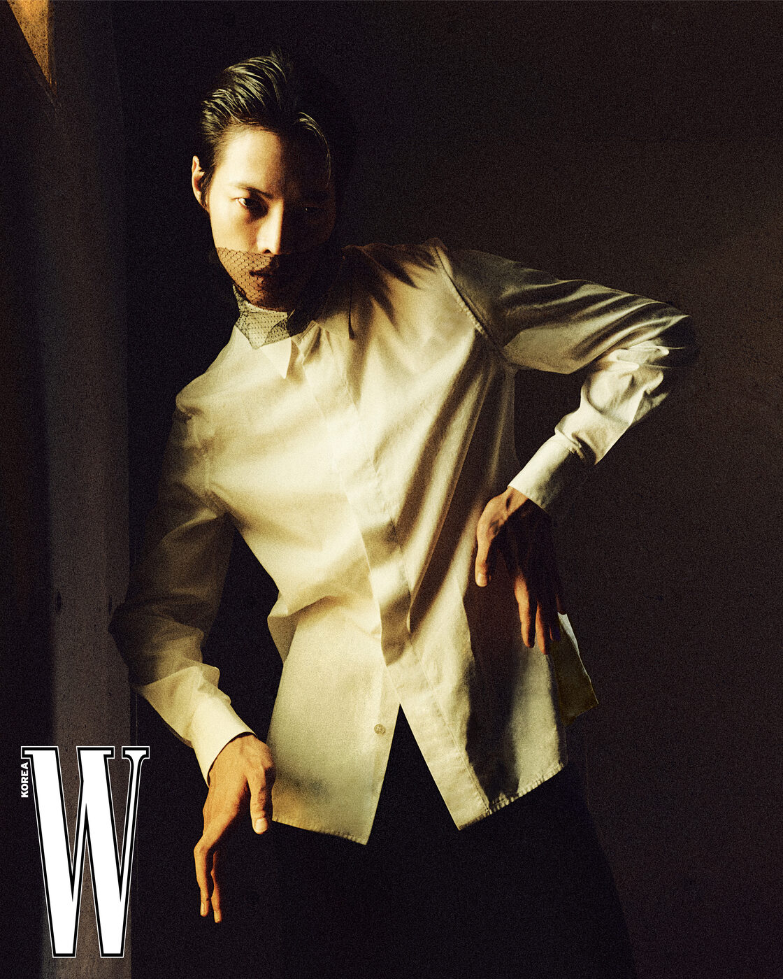 검정 블라우스와 팬츠는 Dior Men 제품.