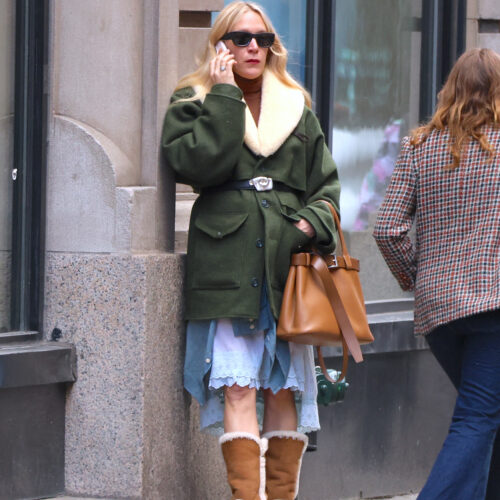 여기서 그치지 않고 또 다른 대세 아이템인 체크 패턴의 미디 스커트, 그 또한 중간에 컷 아웃 디테일로 아방가르드함을 살려 개성을 드러냈어요. 그리곤 벨트가 달린 레트로 풍의 브라운 롱 부츠로 그녀만의 아이덴티티가 살아있는 가장 트레디한 조합을 선보였죠. 컬러와 패턴, 소재, 그 모든 것들이 다 달라도 클로에 세비니의 손길이 닿는다며 이처럼 스타일리시한 옷차림이 완성된답니다.