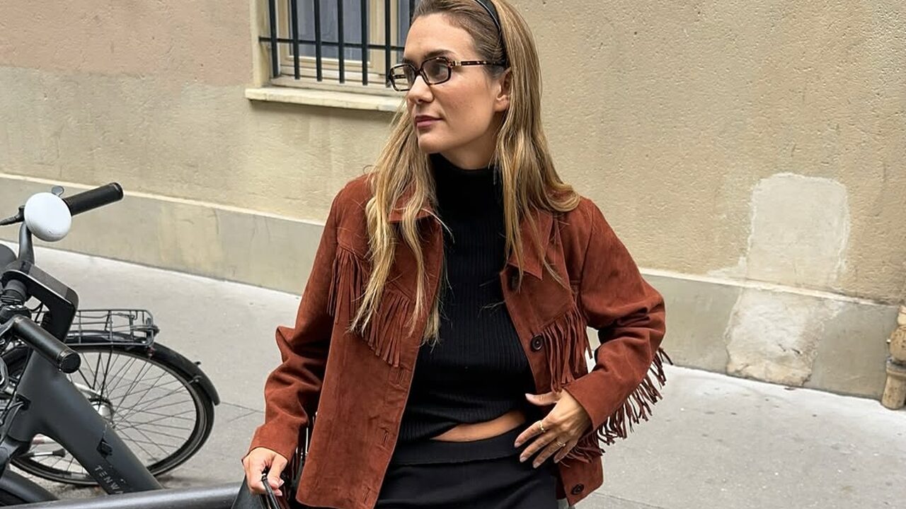 화려한 프린지가 돋보이는 스웨이드 재킷은 블랙 아이템들과 함께 스타일링해 보세요. 블랙이 전체적인 톤을 정리해 주기 때문에, 스웨이드 특유의 질감과 장식적인 프린지 디테일도 과해 보이지 않죠. 룩이 더 고급스럽고 세련되어 보이는 건 물론이고요.