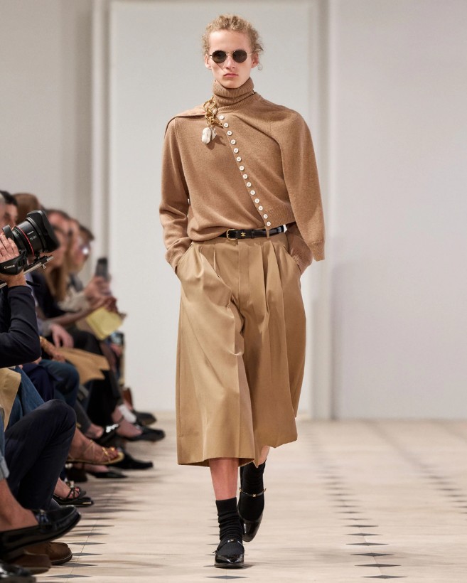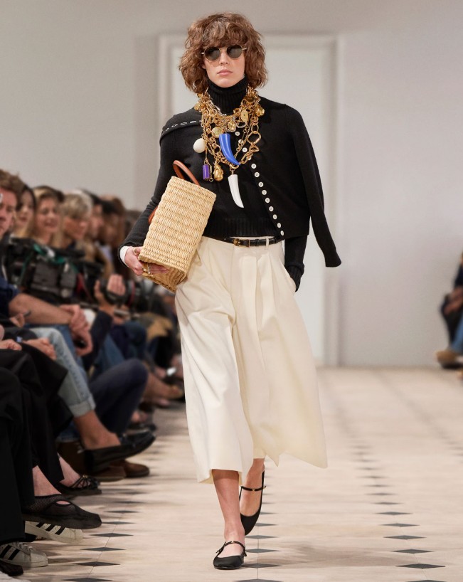 사실 이와 같은 스타일링은 셀린느의 2025 봄 컬렉션에서 선보여졌습니다. 해당 컬렉션은 새로운 수장인 마이클 라이더의 셀린느 데뷔 쇼이기도 했는데요. 당장 따라하고 싶은 수많은 스타일링 팁 중 가디건을 비틀어 입는 방식은 크롭 팬츠와 함께 간절기에 가장 멋스럽고 유용하게 활용할 수 있는 포인트였죠.