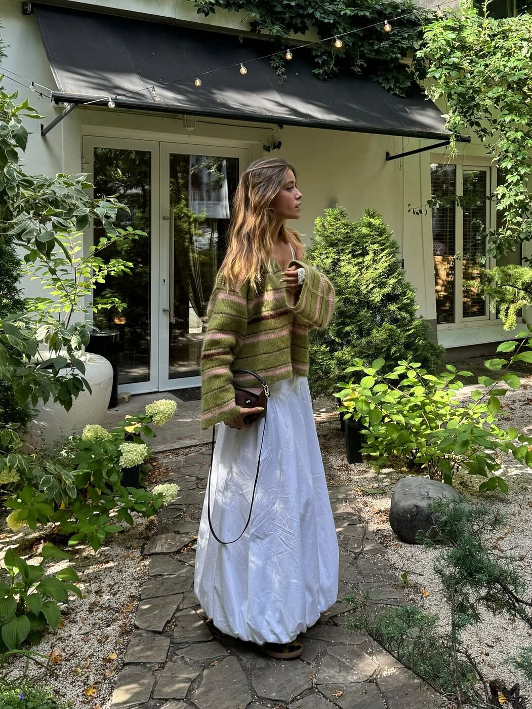 패턴 니트는 활용도 면에서도 완벽한 아이템입니다. 올리브 그린 컬러의 스트라이프 가디건은 가까이서 보면 핑크와 브라운 톤이 교차되어 가을 컬러 팔레트를 그대로 담고 있죠. 브라운 스커트, 빈티지한 드레스 뿐만 아니라 데님, 셔츠 어디에나 잘 어울리는 그야말로 돌려입기 좋은 아이템!