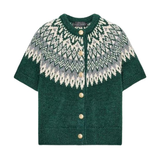 할머니가 떠준 듯한 포근함이 매력적인 빈티지 스웨터, 페어 아일 패턴. 어떻게 입을 지 고민됐다면 이 룩을 참고하세요. 슬릭한 헤어와 미니멀한 부츠로 밸런스를 맞추면 빈티지한 감성이 한층 세련되게 완성됩니다.
