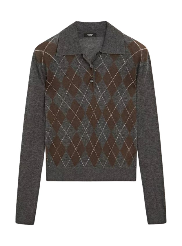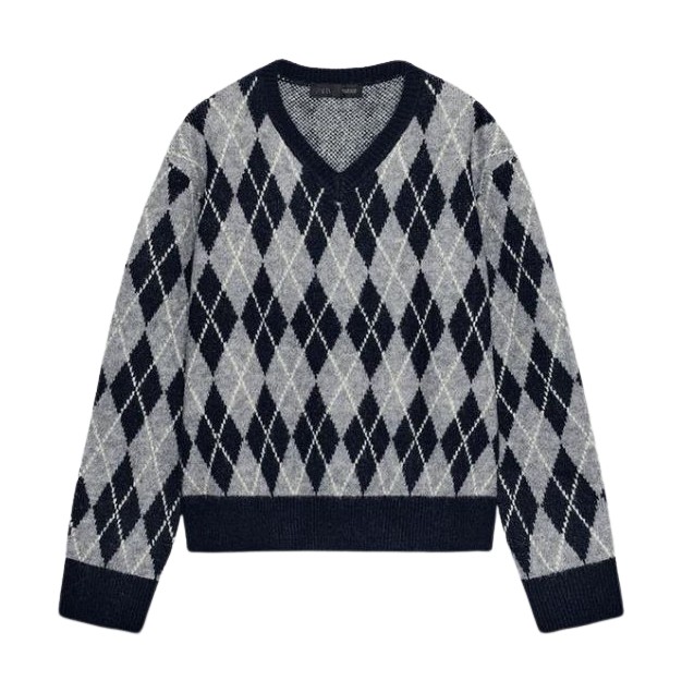 가을하면 가장 먼저 떠오르는 건 역시 아가일 패턴입니다. 스코틀랜드의 전통 문양에서 유래한 다이아몬드 모티프는 단정하면서도 프레피한 매력이 있죠. 패턴을 입을 때 기억해야 할 점은 바로 패턴의 컬러예요. 패턴 속 컬러를 스커트나 팬츠에 자연스럽게 이어주면 감도 높은 룩을 완성할 수 있습니다.