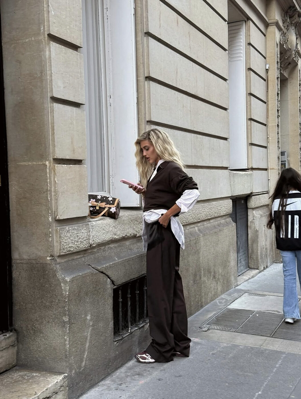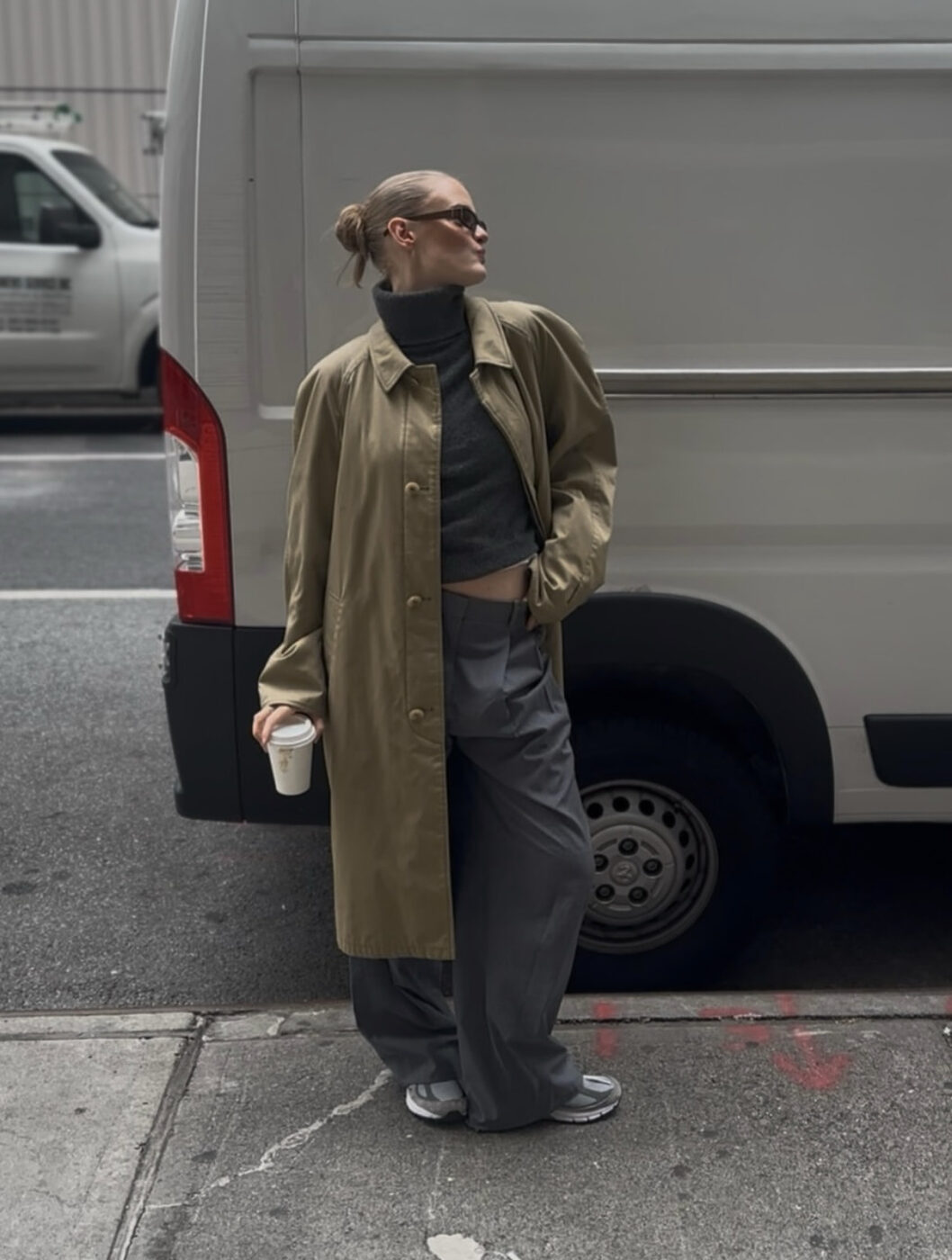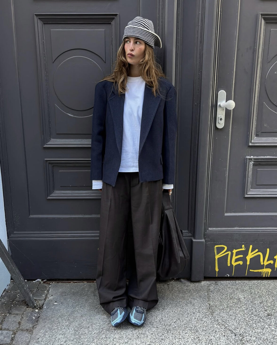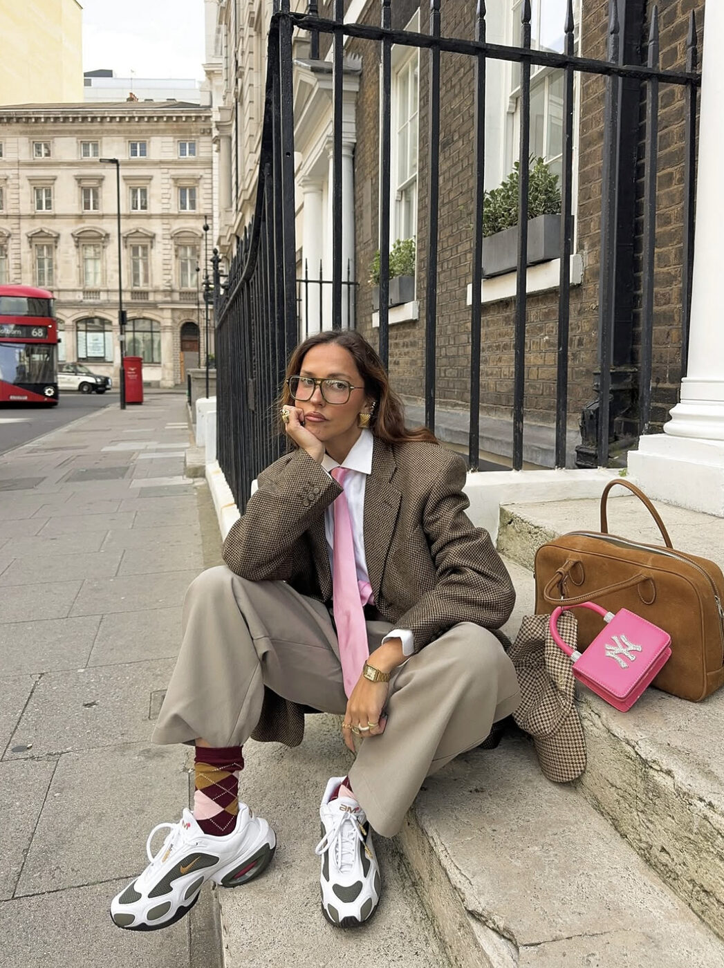 재킷과 슬랙스 룩을 즐기는 패션 인플루언서들은 가을만 되면 기다렸다는듯 이 조합을 시도합니다. 그리고 스포티한 신발을 신곤 하죠. 힐이었다면 당연했을 룩이, 운동화 하나로 훨씬 자유로워졌달까요? 이땐 색 조합이 중요한데요. 러닝화나 스포티한 신발은 원톤 보다는 여러 컬러가 믹스돼있는 것이 많아 꽤나 제약이 많습니다. 가을의 컬러인 회색이나 갈색 조합으로 톤을 다 맞추고, 트렌치 코트를 툭 걸치는 베이지+회색 조합도 추천하고요. 아니면 시나 안줄리처럼, 네이비 재킷에 초콜릿 컬러의 슬랙스, 그리고 푸른색과 회색이 섞인 러닝화를 신어보는 것도 좋겠어요. 포인트 컬러를 신발에만 주는 거죠.