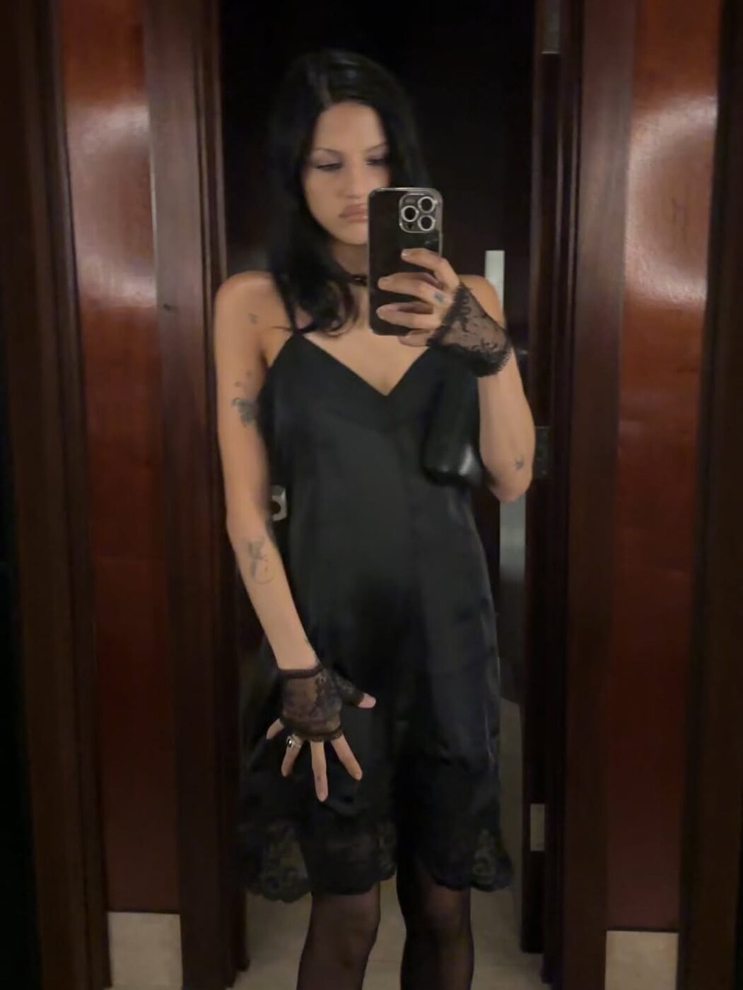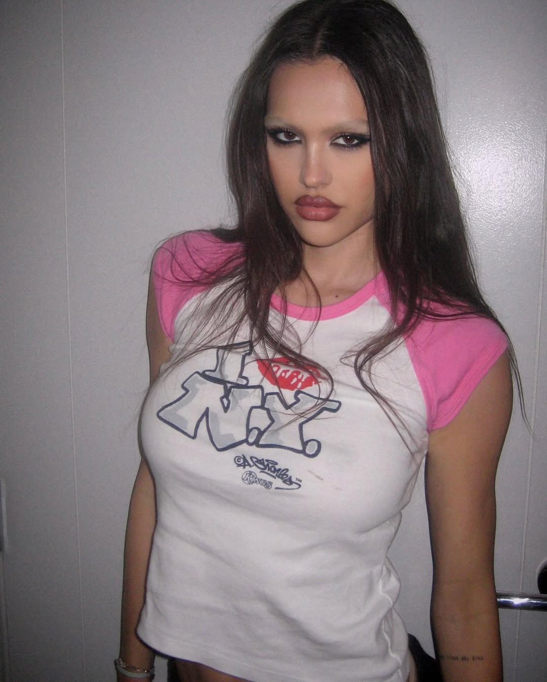 모델 아멜리아 그레이와 가브리에트 벡텔 역시 메시 걸의 좋은 레퍼런스입니다. 아멜리아와 가브리에트 모두 긴 블랙 헤어에 특이한 눈썹으로 창백하고 고딕한 무드를 보여주지만 선호하는 아웃핏은 전혀 다르죠. 가브리에트는 블랙 같은 어두운 톤의 아이템들을 고수하고 슬립 드레스나 타이트한 레더 재킷에 스키니 진으로 슬림한 실루엣을 연출하는데요. 반면 아멜리아는 오히려 서늘한 마스크와는 달리 귀여운 프린트 티셔츠나 밝은 컬러의 아이템으로 룩에 좀 더 러블리한 요소를 넣어 주는 편입니다.