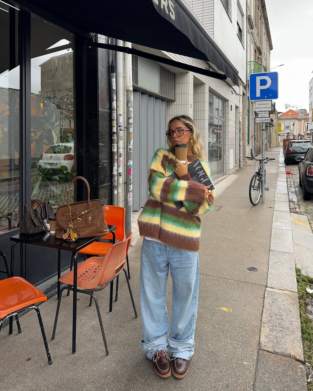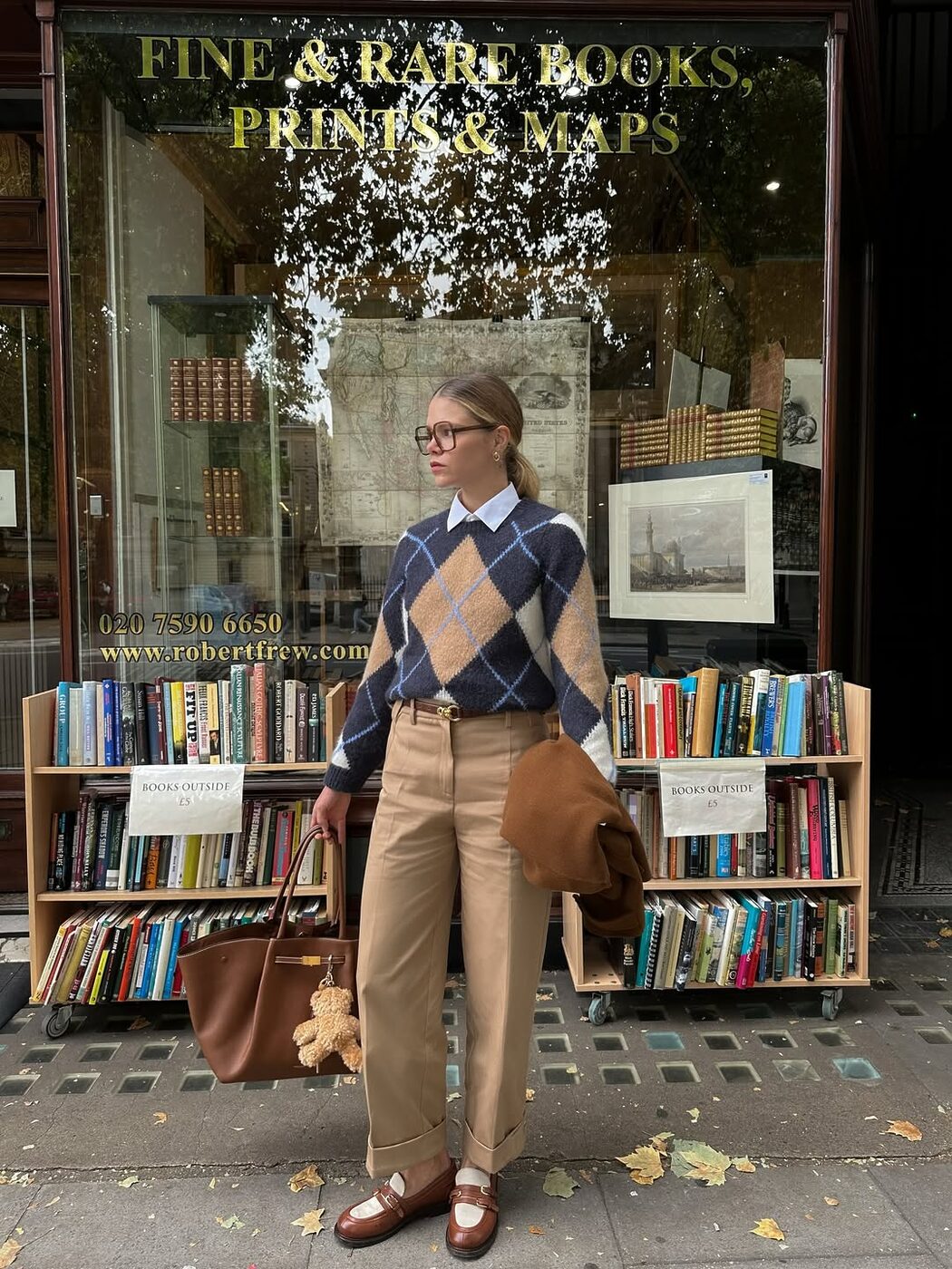 빈티지하고 컬러풀한 패턴이 살아 있는 니트를 선택하면 룩 전체에 경쾌한 에너지가 흐릅니다. 데님 팬츠는 캐주얼한 느낌을, 코듀로이나 벨벳처럼 따뜻한 질감이 느껴지는 하의로 톤을 맞추면 차분하면서 포근한 감성을 더할 수 있죠.