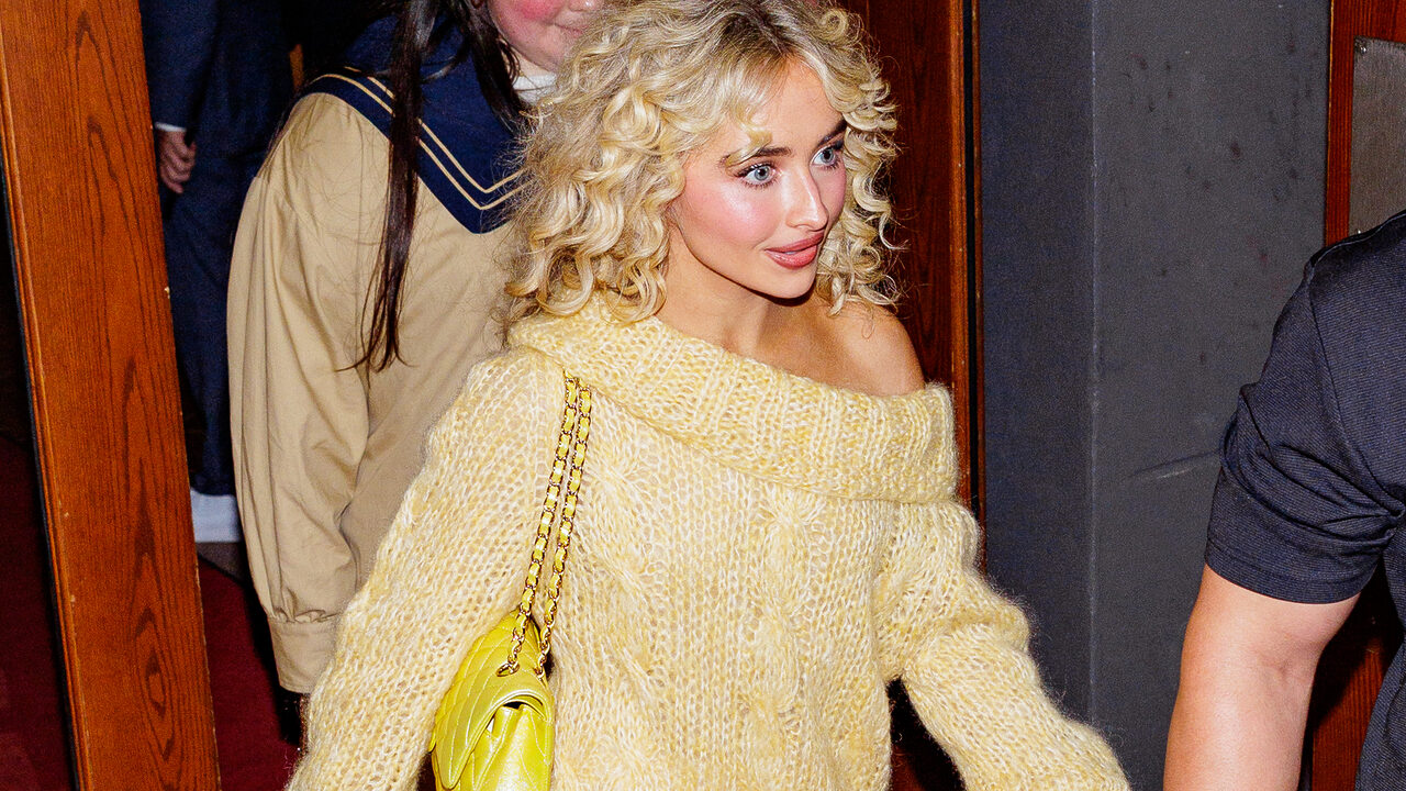 올 가을과 겨울, 사브리나 카펜터처럼 아담한 실루엣을 가진 이들이라면 도전해 봐야 할 니트 룩입니다. 작고 귀여운 체형의 장점을 살려 도톰한 꽈배기 짜임의 니트를 미니 드레스처럼 연출했는데요. 니트부터 양말, 가방까지 온통 옐로우 이어지는 모습이 너무나도 사랑스럽습니다.