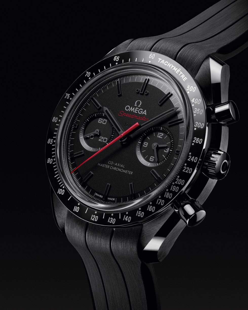 • 오리지널 다크 사이드 오브 더 문: 코-액시얼 마스터 크로노미터 9900 칼리버 구동. 리퀴드메탈™ 타키미터 스케일과 2중 세라믹 다이얼 구조로 재탄생했다.
