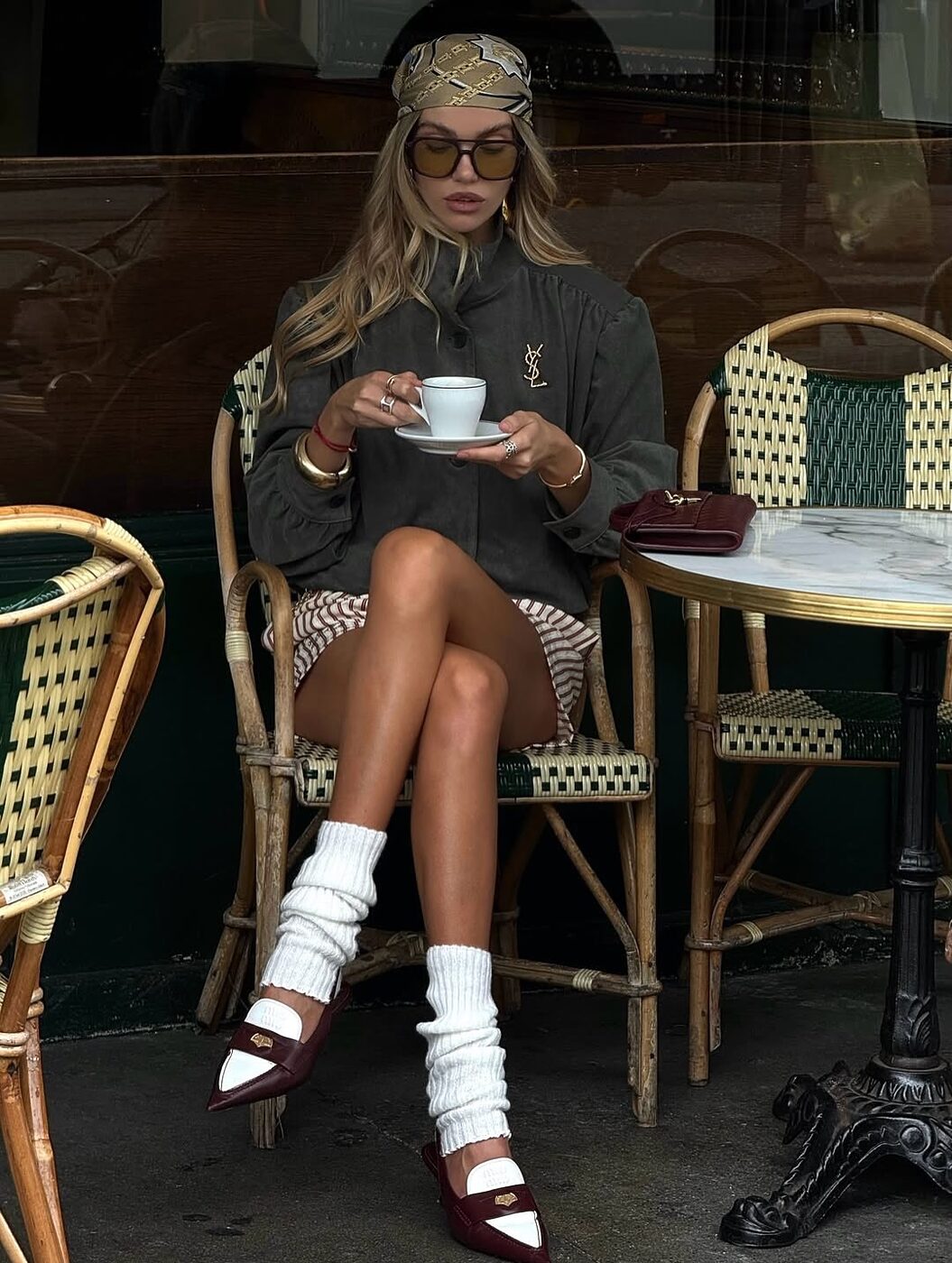 막차 탑승처럼 간절기 끝자락에도 짧은 하의를 포기 못할 때! 도톰한 양말의 실루엣의 맨다리에서 더욱 빛납니다. 자칫 1990년대 유행하던 ‘발토시’처럼 안보이려면 운동화 보다는 펌프스를 신는 것이 맞습니다.