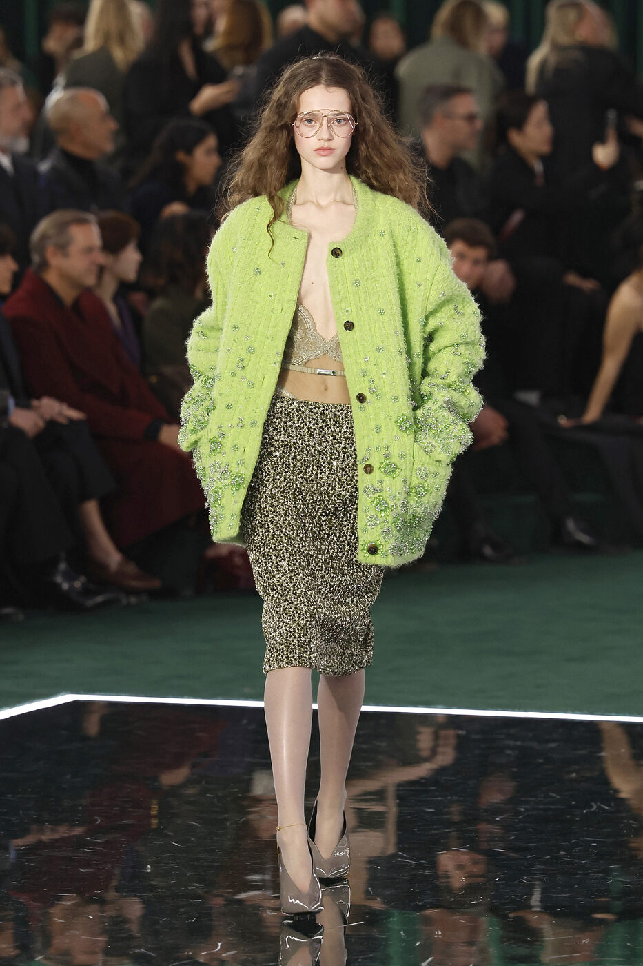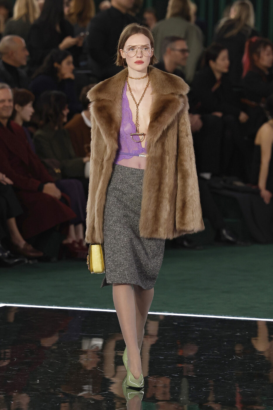 구찌의 2025 F/W 런웨이는 다양한 시대를 넘나드는 ‘구찌스러운’ 스타일로 가득했습니다. 그 중에서도 미디 길이의 스커트는 단정하면서도 강렬한 존재감을 드러냈죠. 퍼 재킷과 함께 연출된 미디 스커트 룩은 글래머러스한 매력을 강조했고, 트위드 소재 미디 스커트에 오버사이즈 니트 카디건을 매치한 룩은 여유롭고 세련된 감성을 뽐냈습니다.