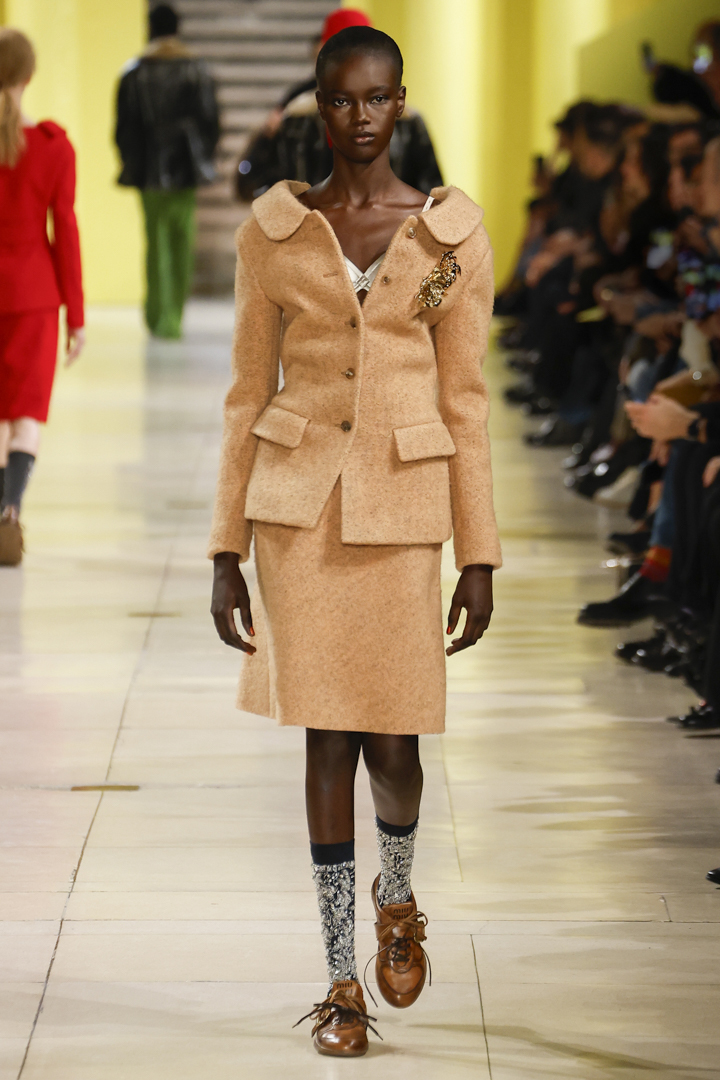 2025 F/W 미우미우 컬렉션은 60년대 레이디 스타일을 현대적으로 재현했습니다. 그리고 그 중심에는 미디 길이의 스커트가 있었죠. 재킷과 함께 셋업으로 구성된 클래식한 룩부터, 레트로한 체크 패턴의 스커트, 단정한 블랙 미디 스커트까지, 런웨이는 그야말로 다양한 미디 실루엣의 향연으로 가득했습니다.