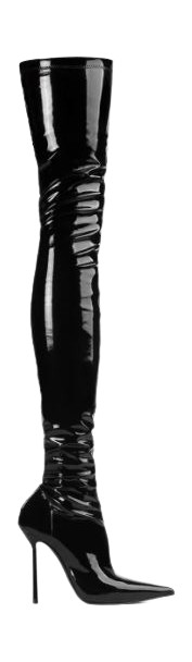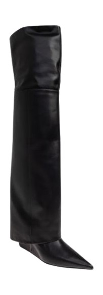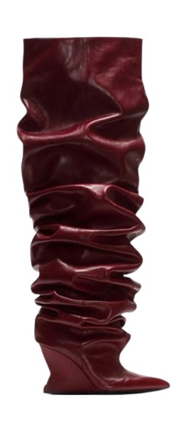 발망카프스킨 주름 웨지 싸이하이 부츠