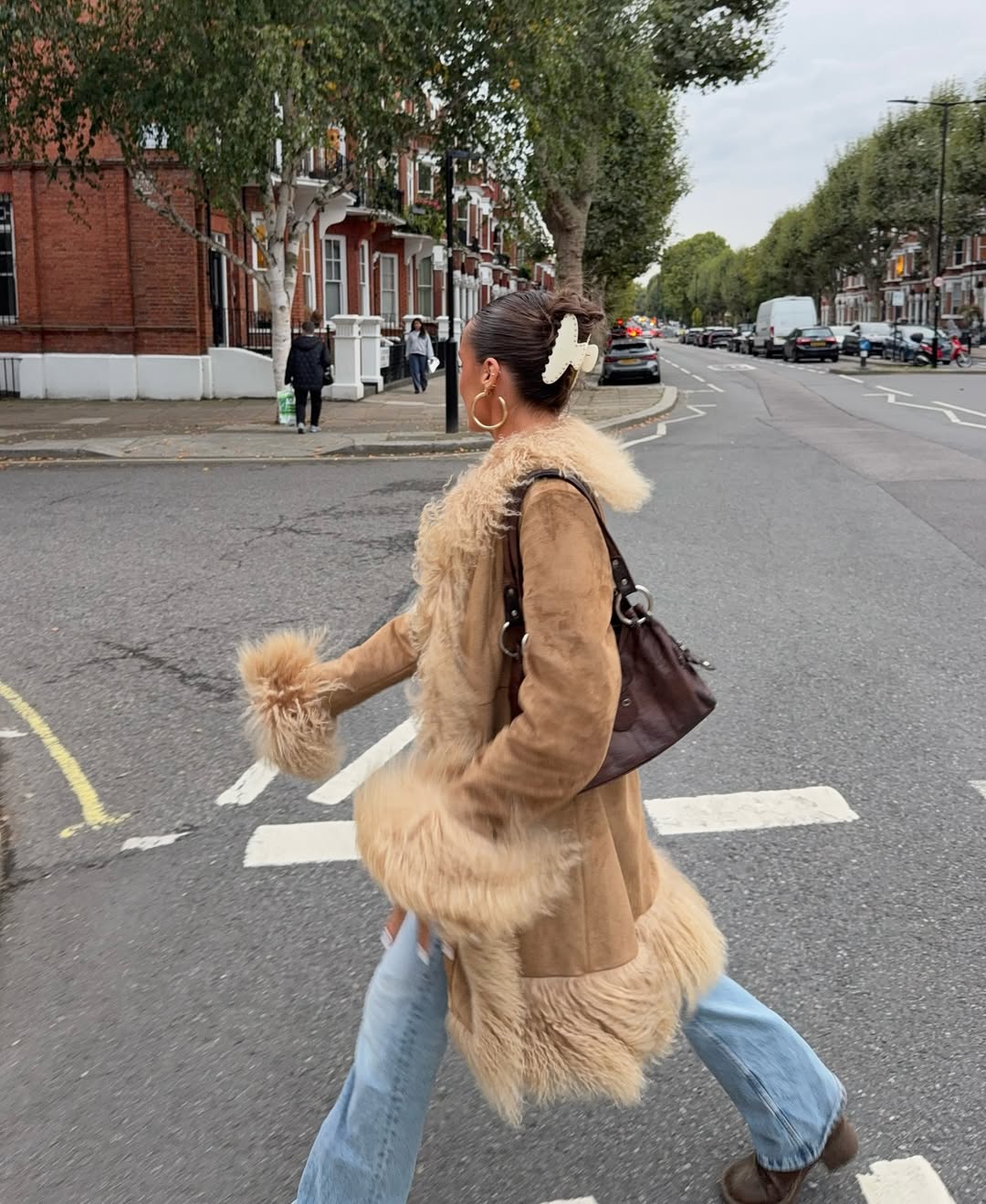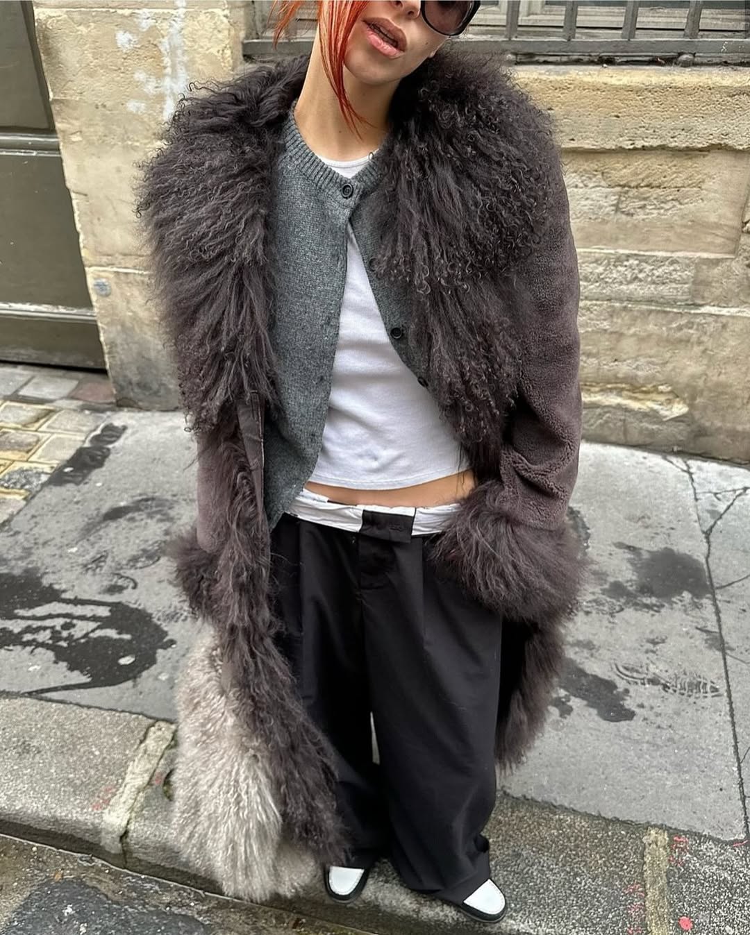 퍼 트리밍 코트의 가장 큰 매력은 옷 단이나 소매 끝에만 퍼가 더해져 있어서 부피감이 과하지 않다는 점이에요. 덕분에 전신 퍼 코트보다 훨씬 부담 없이 스타일링하기 좋죠.
