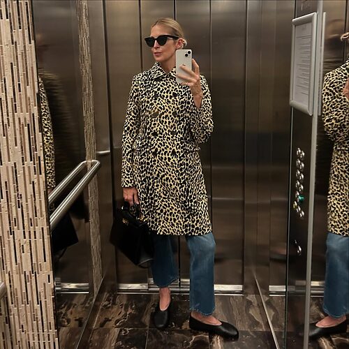 블레이저 재킷에 가려지는 아주 짧은 레더 미니 스커트. 레더 스커트를 트렌디한 방식으로 해석한다면 이런 모습이지 않을까요? 지금 날씨에만 도전할 수 있는 세련된 간절기 룩입니다.