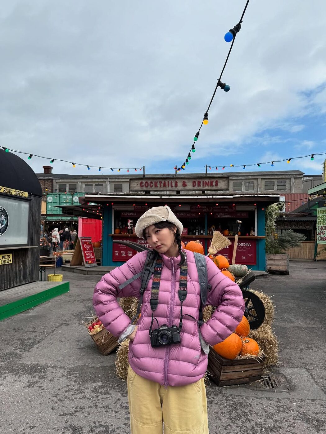 슬기는 사랑스러운 핑크 컬러의 경량 패딩에 옐로우 팬츠를 매치해 상큼한 무드를 연출했습니다. 여기에 트루퍼 햇과 배낭을 더해 귀여운 여행 룩을 완성했는데요. 경량 패딩 특유의 가벼움이 주는 경쾌한 이미지와도 잘 어울리는 룩이죠.