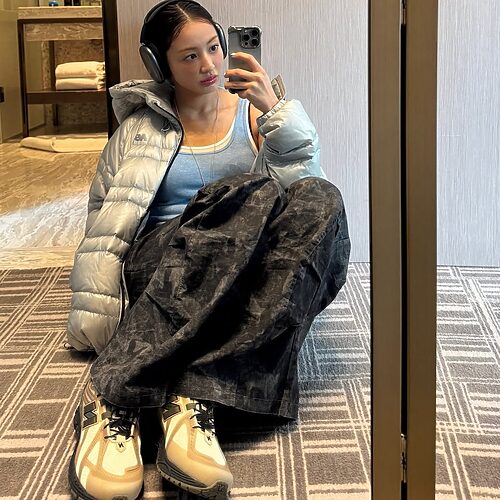 깔끔한 원 톤 룩에는 슈즈의 존재감을 과하게 드러내지 않는 것도 좋은 선택입니다. 발등이 오픈된 PVC 소재의 힐처럼 컬러가 없는 슈즈를 선택하면 미디 스커트 특유의 답답한 실루엣도 가볍게 연출할 수 있어요. 투명한 질감 덕분에 다리 라인이 자연스럽게 이어져 전체적인 밸런스도 세련되게 느껴집니다.