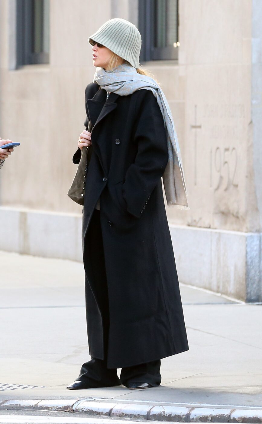 고전적인 분위기와 도회적인 세련미를 고루 지닌 제니퍼 로렌스는 패션 또한 클래식함과 트렌디함을 적절히 섞을 줄 아는 센스를 지녔습니다. 그런 그녀가 여름엔 기본 티셔츠를 스타일리시함을 뽐냈다면, 겨울엔 블랙 롱 코트로 미니멀하고 시크한 옷차림을 완성했어요.