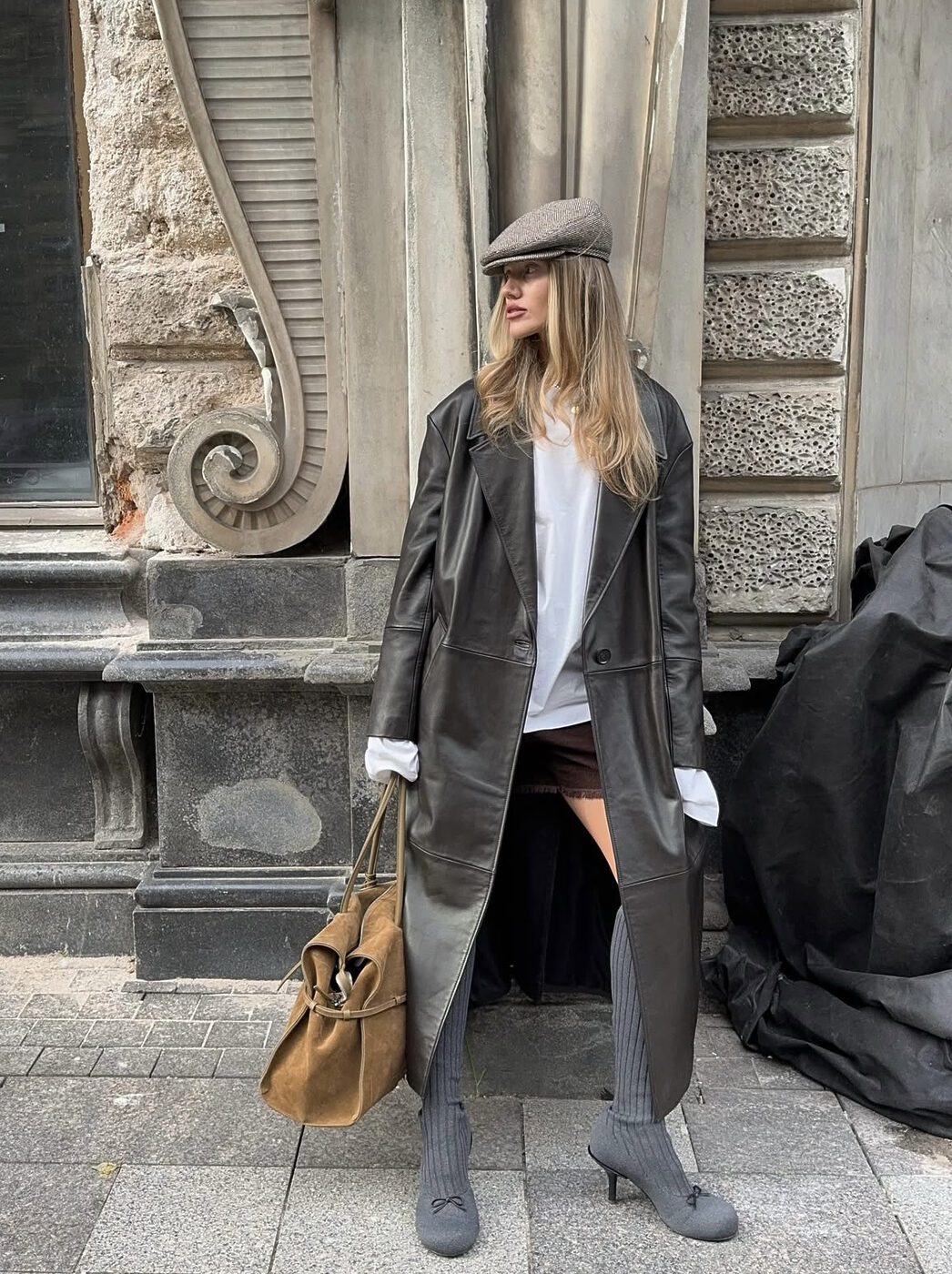 롱 코트와 짧은 하의 조합 너무 쿨하고 멋있지만, 막상 당장에 입으라고 하면 망설여질겁니다. 그리고 그 이유는 다리의 8할이 고스란히 드러난다는 지점일거고요. 그럴 땐 이 간격을 조절해주는 게 관건입니다. 다리를 약간 가려줄 양말이나 부츠를 더해보세요. 시크함의 지수는 살짝 낮아질테지만, 편안함을 얻을 수 있으니 그정도는 약간 내어줘도 되겠죠. 작은 요소라 롱 코트의 묵직하고 펄럭이는 실루엣을 해치지도 않으니 웨어러블하게 시도할 수 있는 디테일이겠어요.