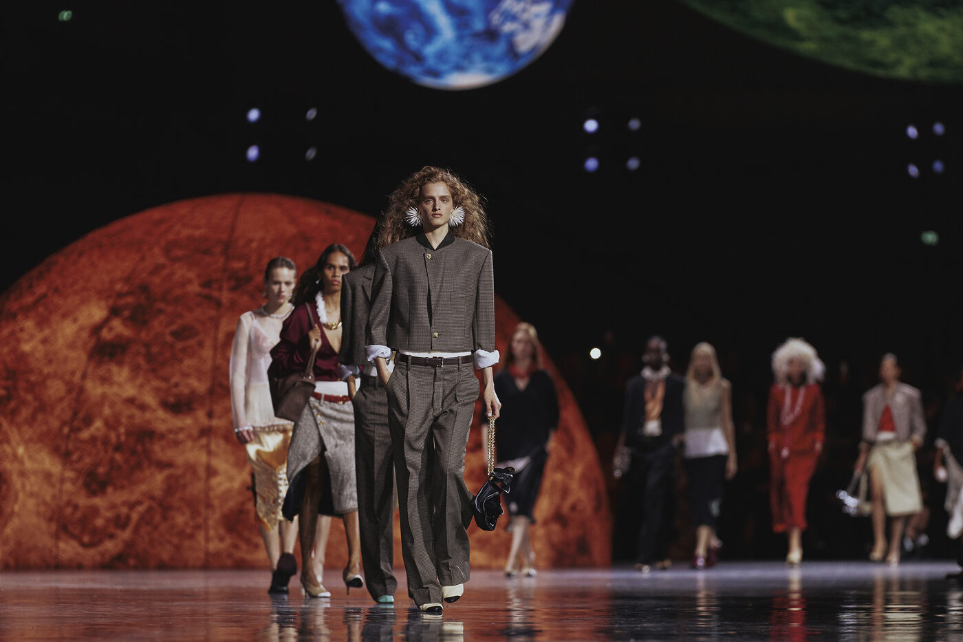 12개의 행성이 떠 있는 태양계에서 샤넬이 쌓아 올린 과거, 현재, 미래가 교차했다. 뉴 크리에이티브 디렉터 마티유 블라지의 세계관은 하우스의 코드를 재해석한 동시에 자유롭게 확장되고 있었다.