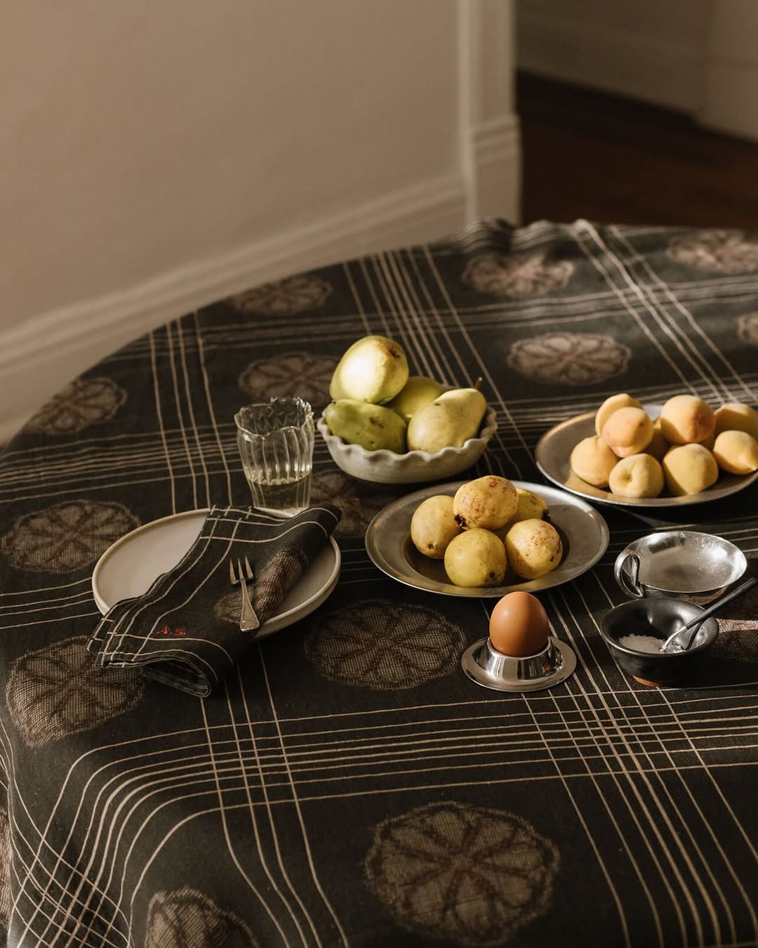암스테르담 기반의 어텀 소나타는 ‘시간이 깃든 직물’을 현대적으로 풀어내는 브랜드다. 네덜란드 전통 섬유 아카이브에서 영감을 받아 제작된 테이블 패브릭과 리넨은 마치 오래된 사진처럼 고요한 정서를 담고 있다. 창립자 겸 디자이너 마리안 샬레(Marianne Challe)에 따르면, 소재 본연의 질감과 섬세한 봉제, 유려한 드레이프, 뉴트럴한 색감을 활용해 ‘정제된 일상’의 미학을 표현한다. 덕분에 편안하면서도 완성도 있는 키친웨어를 만나볼 수 있다. (@autumnsonata.co)